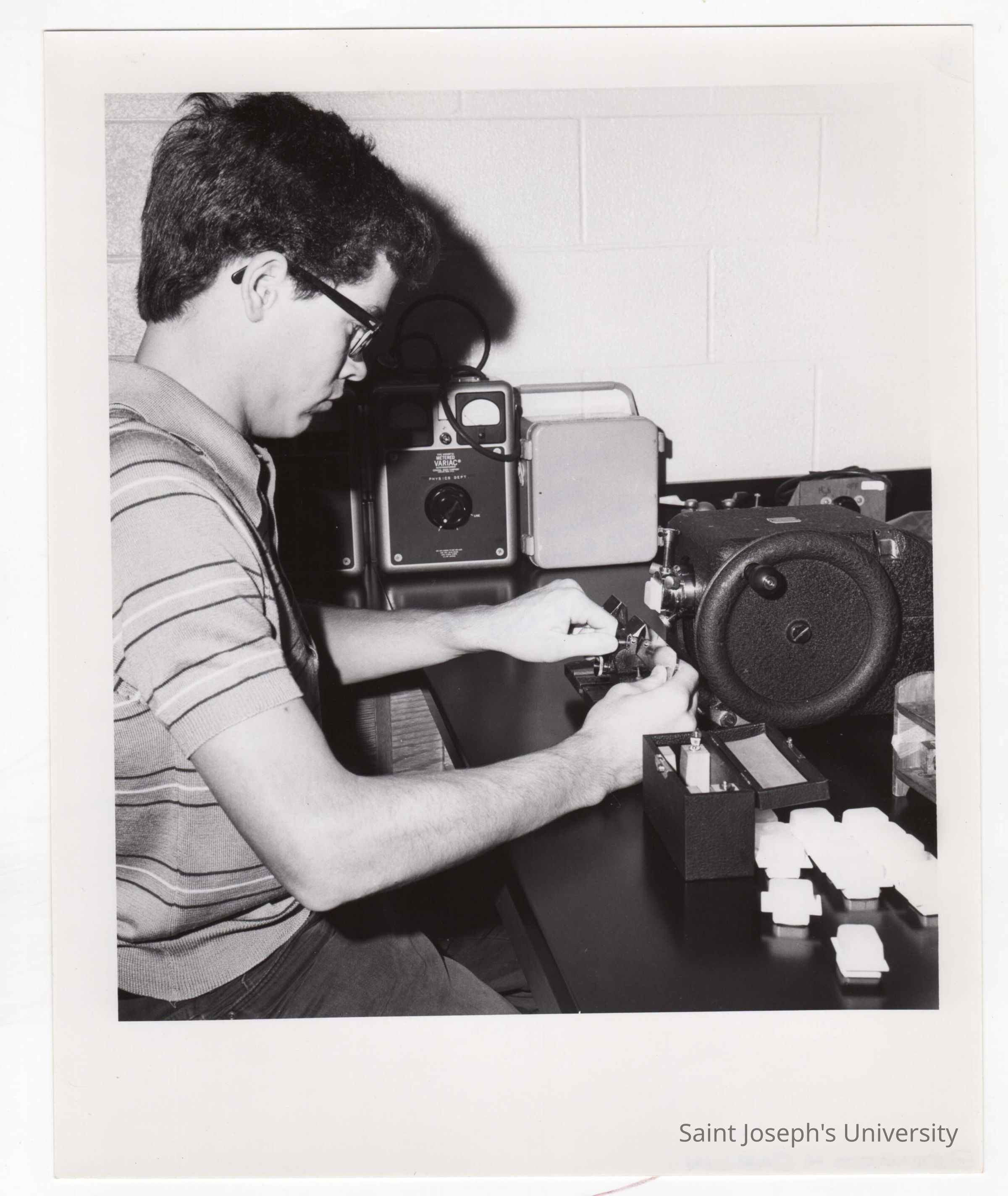 Biology student, Bernard Carlin, working on Crown Gall project in science laboratory, August 1975.