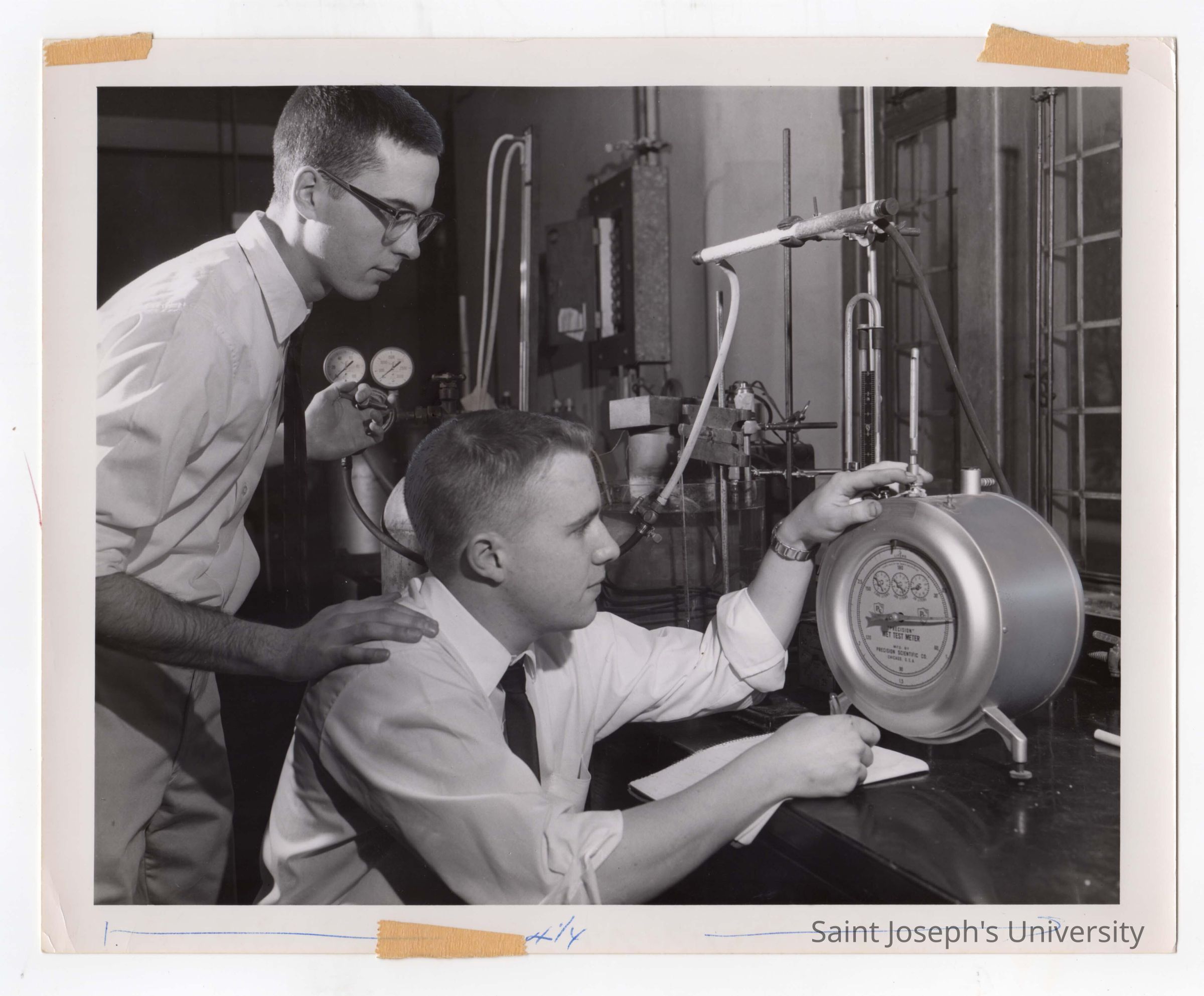 Two graduate chemistry students working in science laboratory, February 19, 1963.
