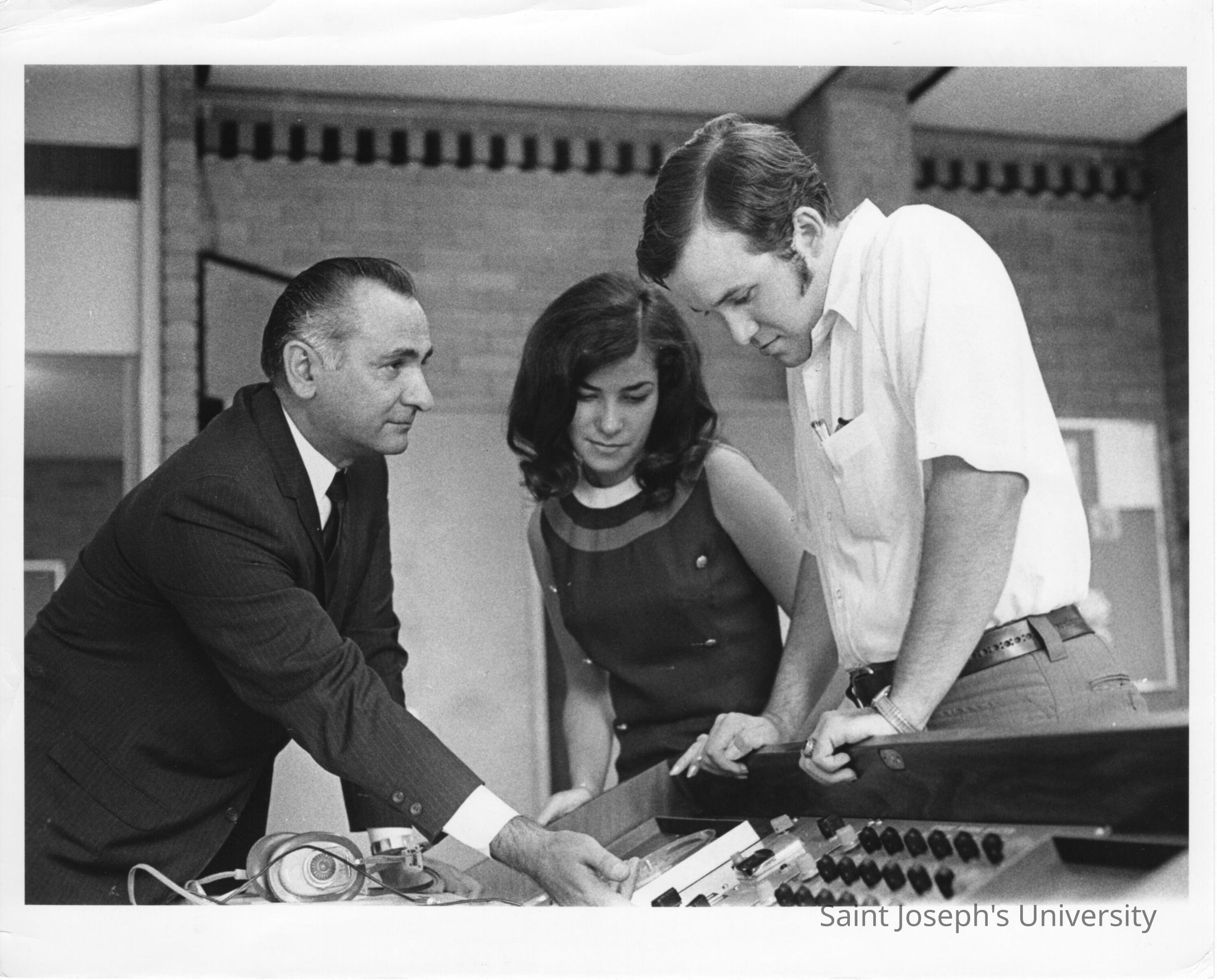 Views of Modern Languages professor, Michael Toconita, with student using equipment in language laboratory, c. 1970.