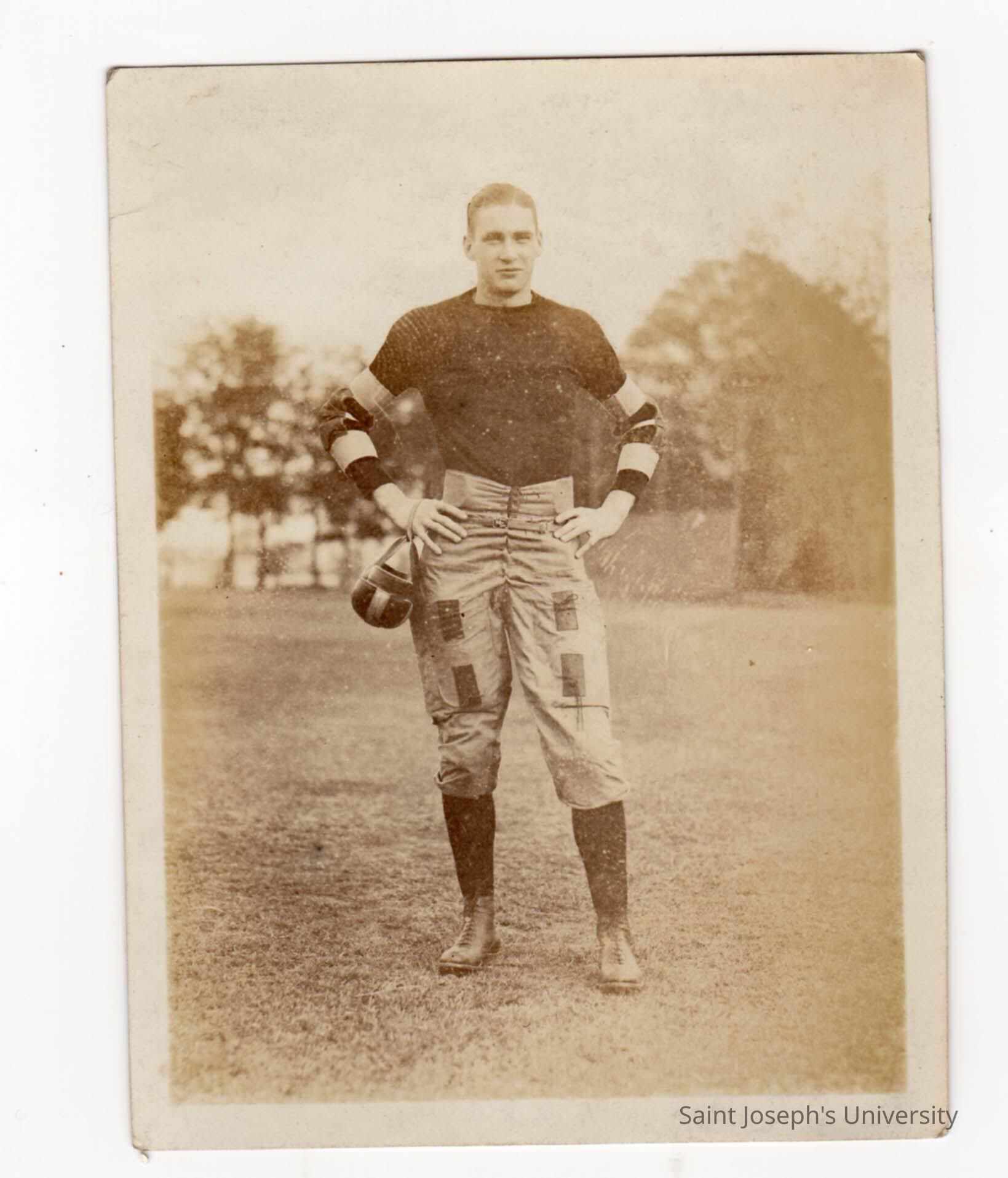 Saint Joseph's Prep football player, Maurie O'Neill, standing on field.