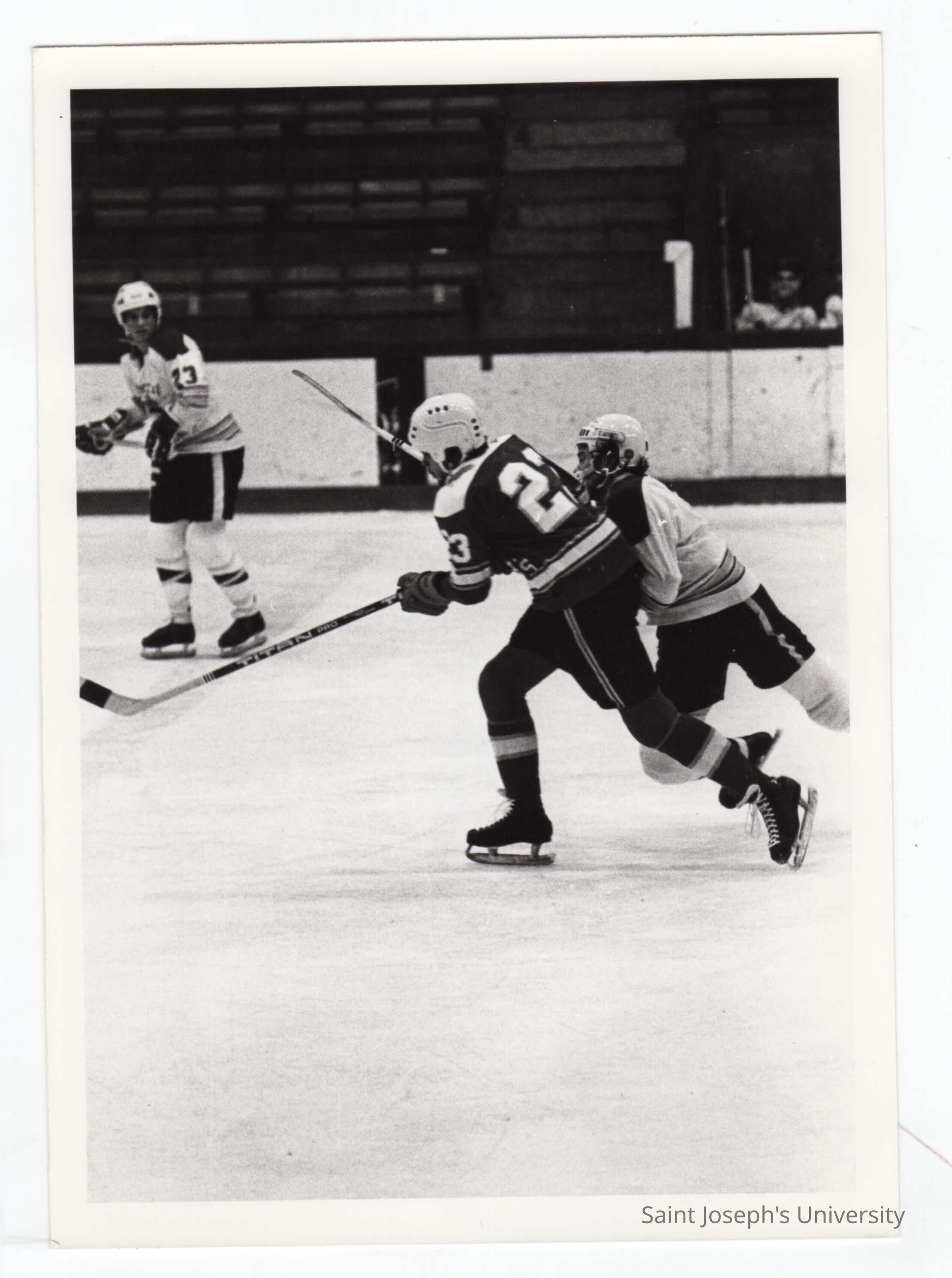 Men's ice hockey team in game.