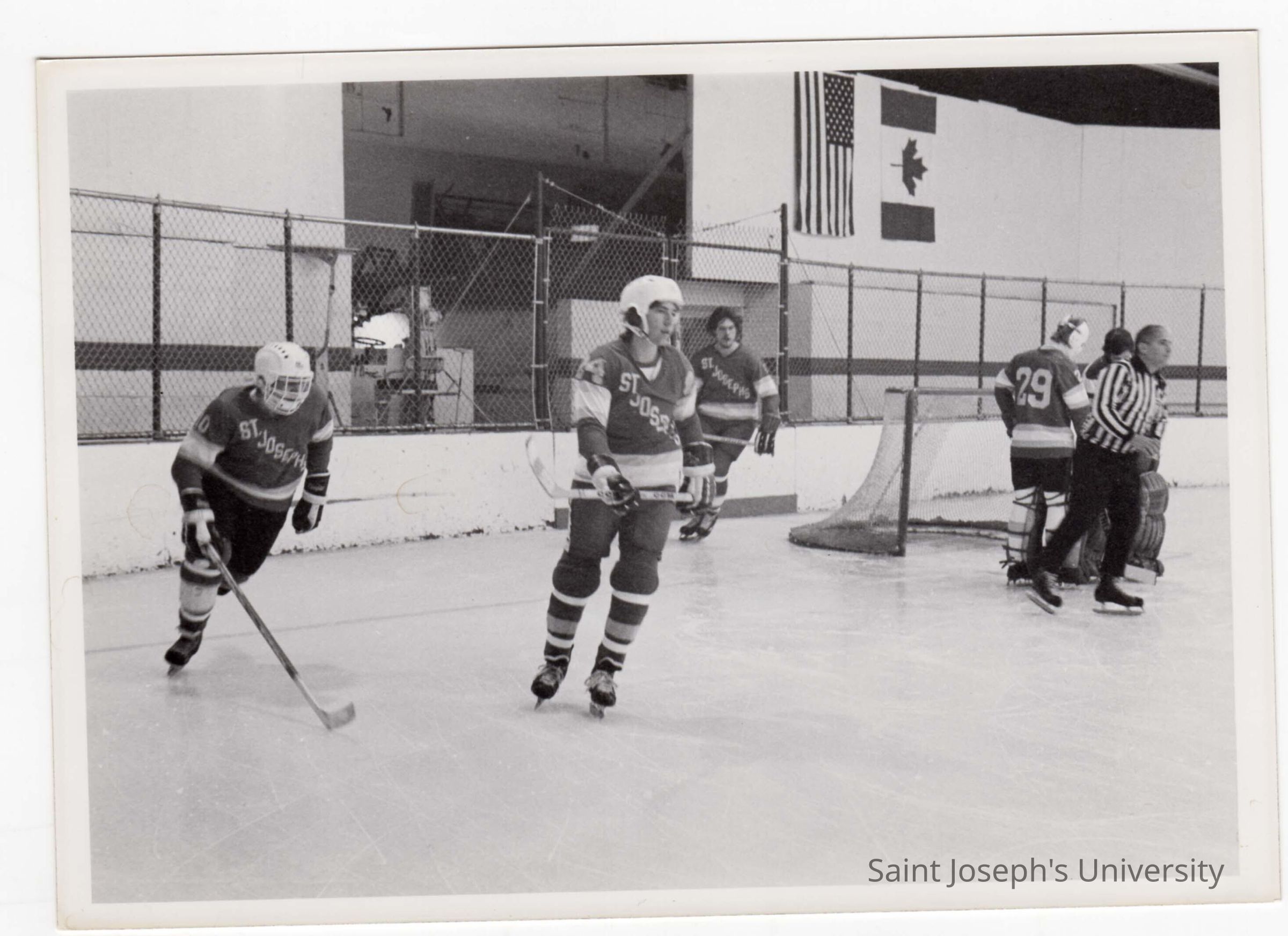 Men's ice hockey team in game.