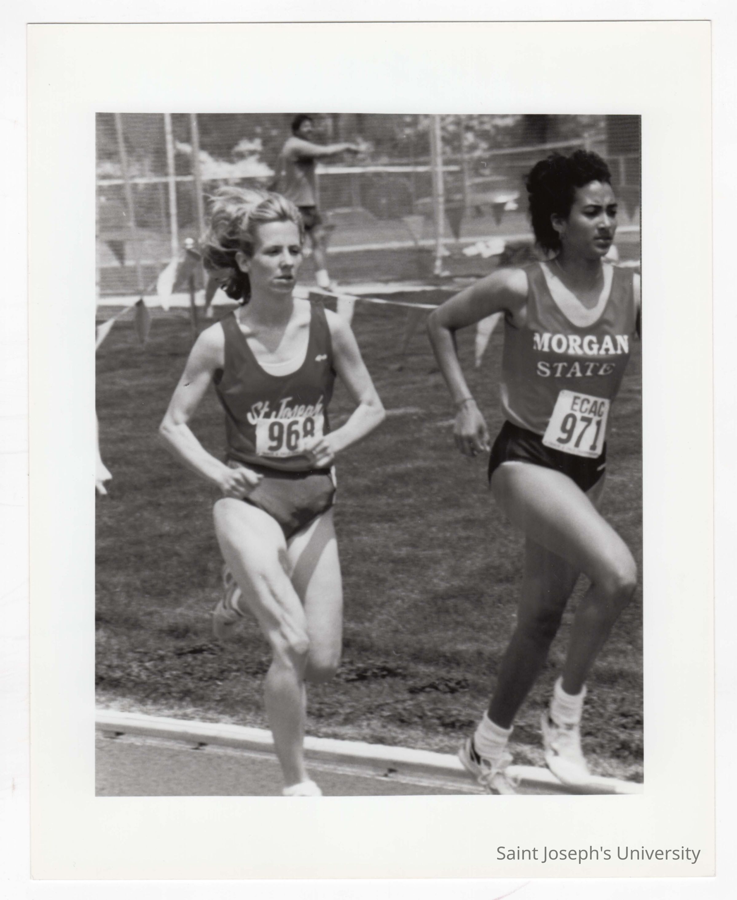 Women's track team member, Sioban Flynn? Competing at meet, 1992.