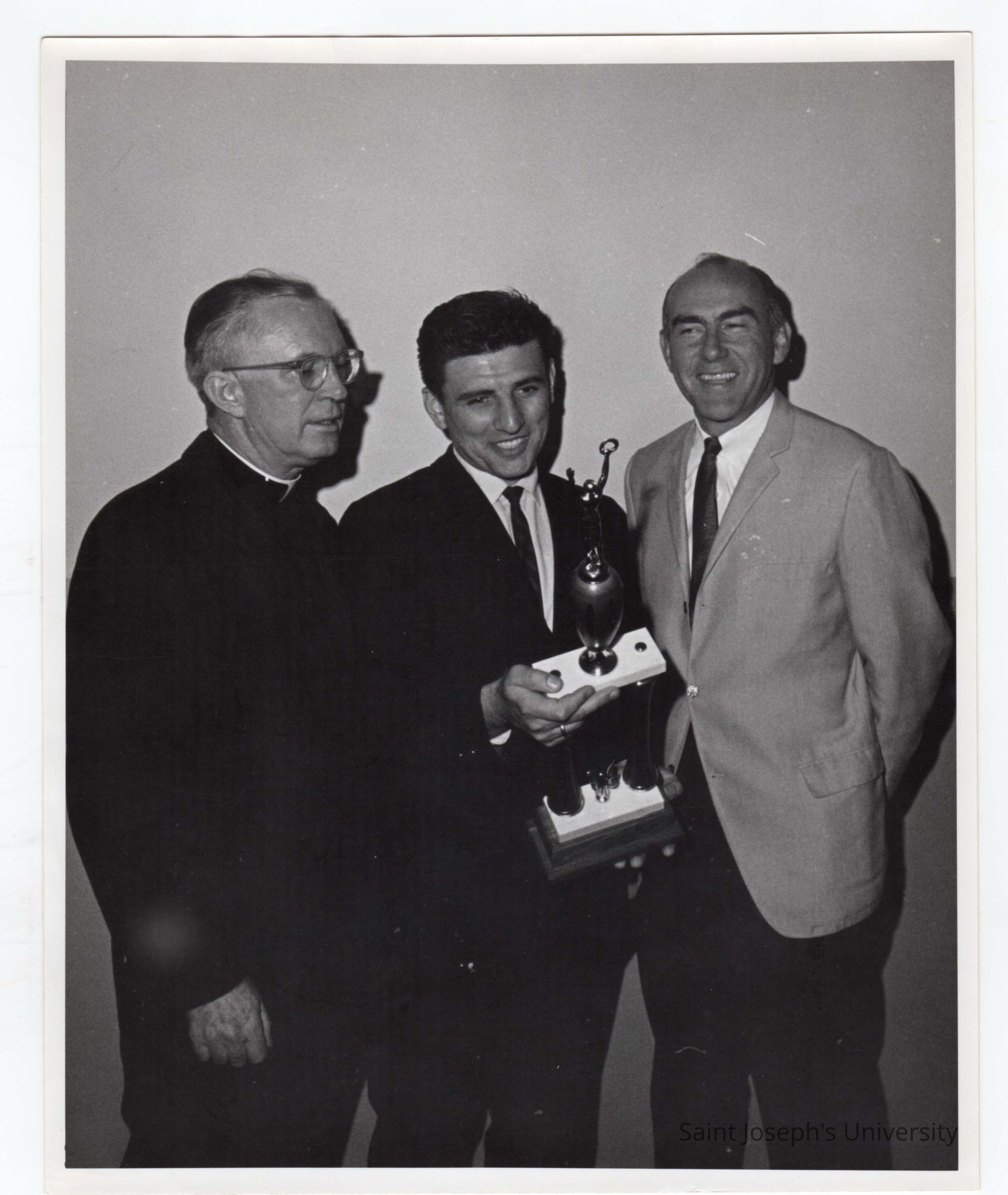 Men's Basketball Steve Donches receives MVP award for legendary game against Villanova at Palestra.