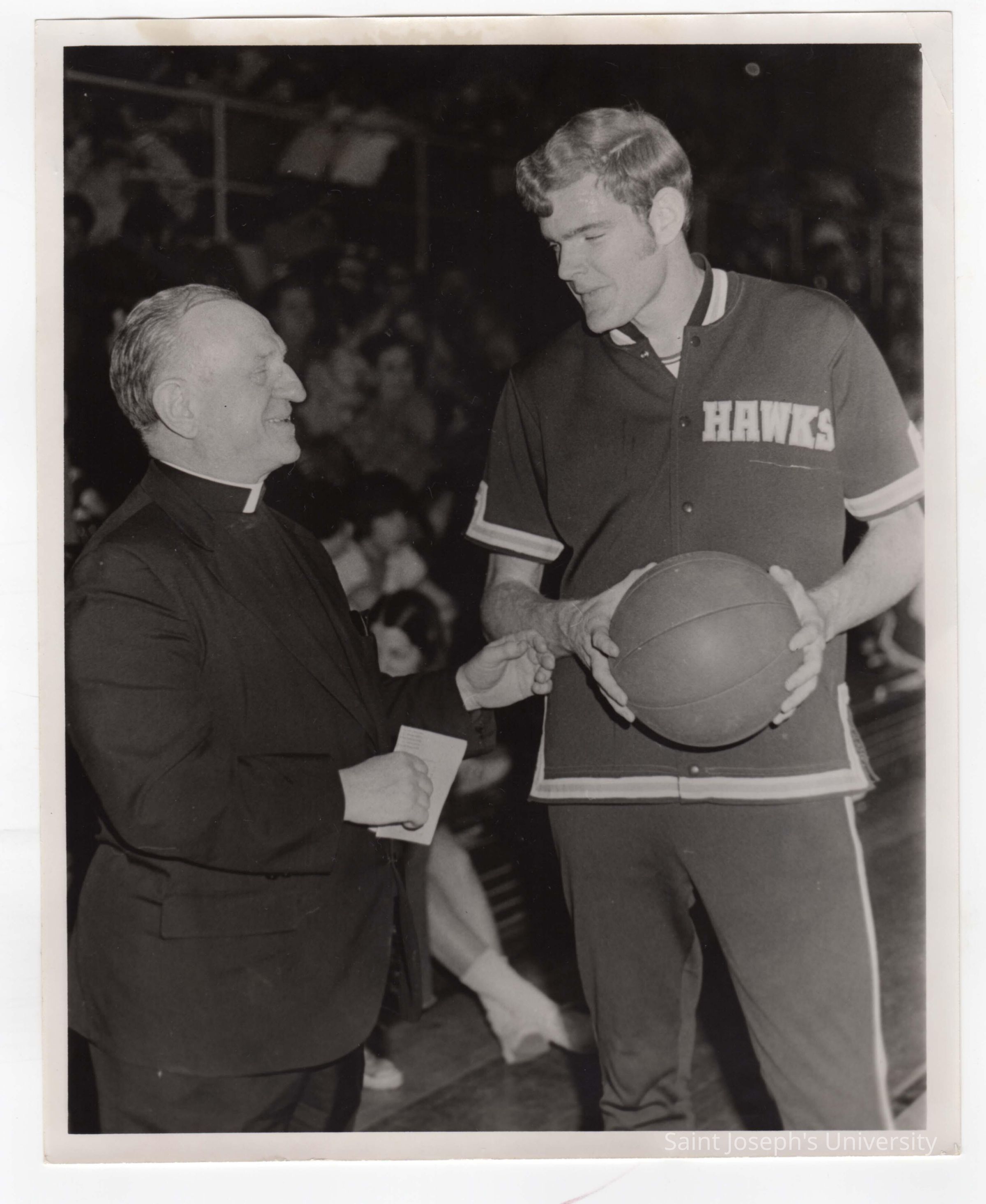 Men's Basketball player John Connolly with Emory Ross, S.J.