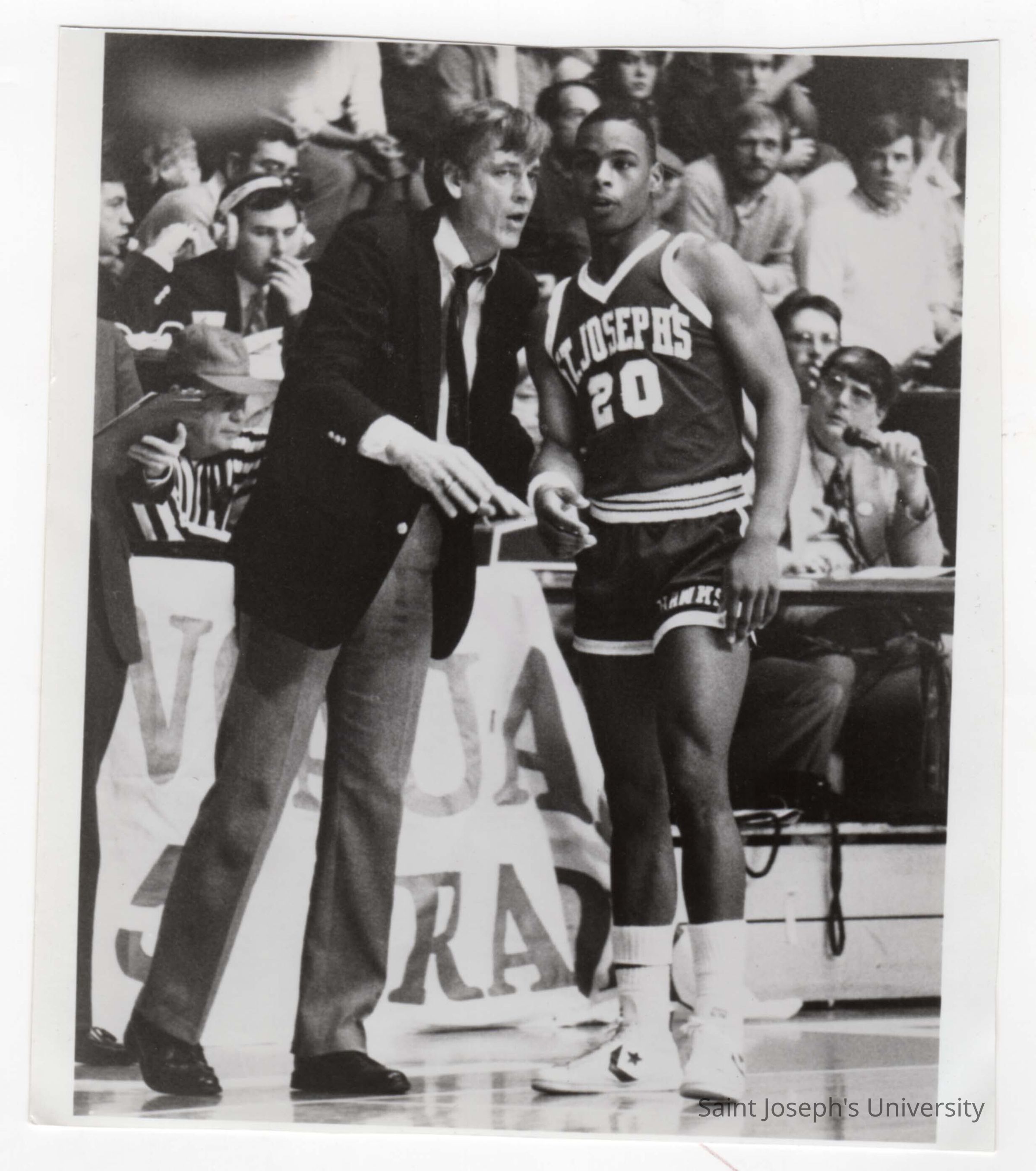 Men's Basketball player Dave Slattery with Coach during game