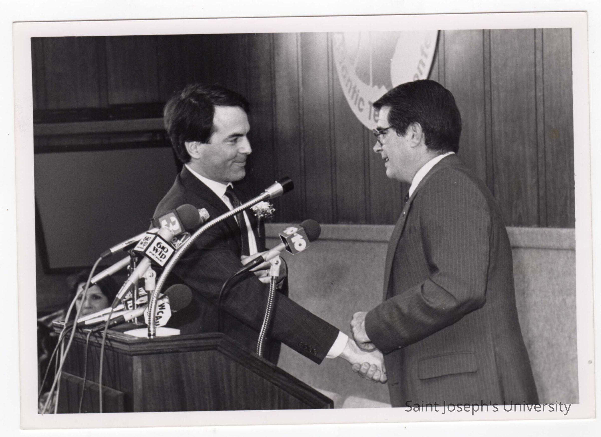Men's Basketball Coach John Griffin and Athletic Director Don DiJulia at press conference