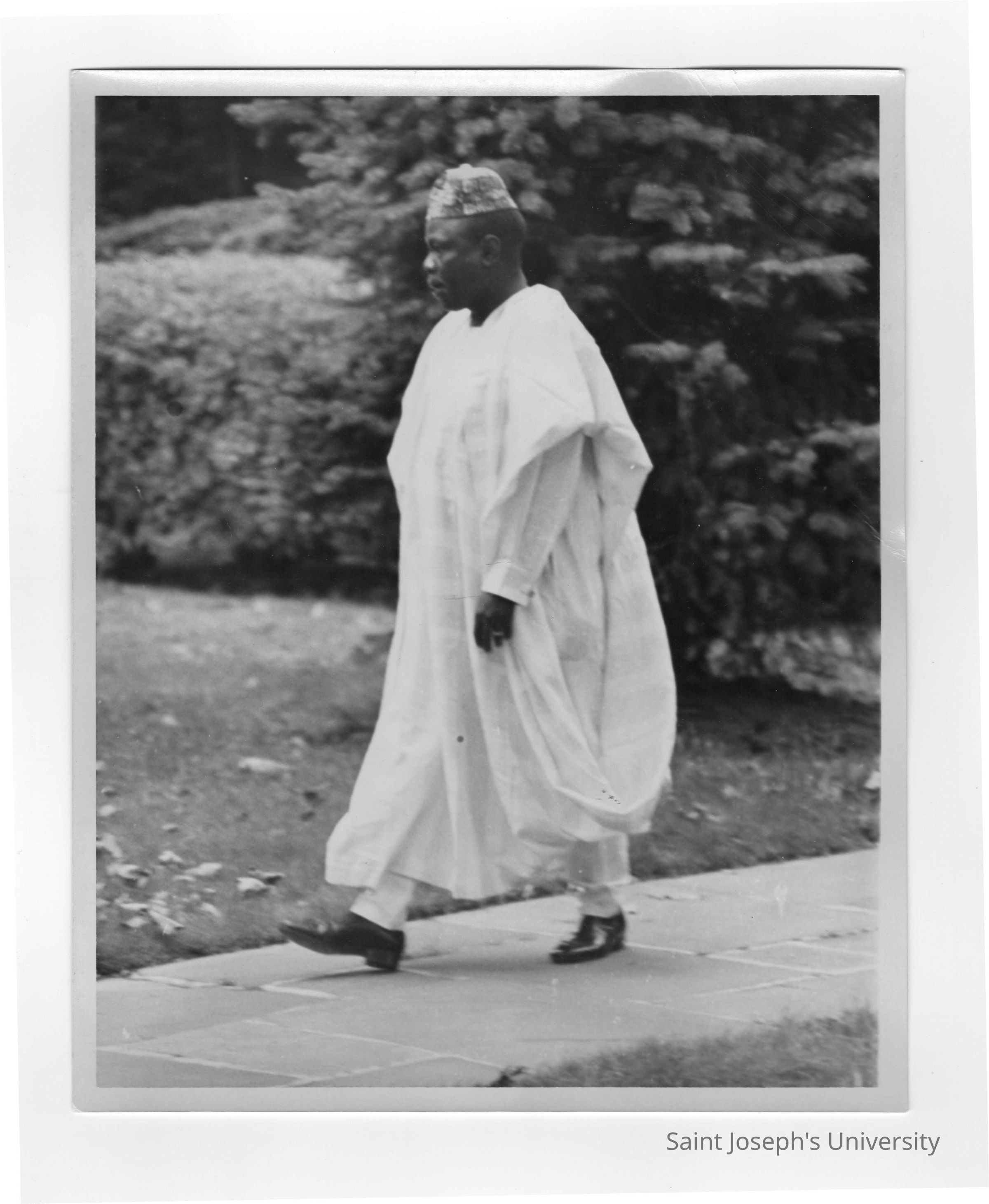 Member of entourage from government of Chad walking on sidewalk during convocation, October 26, 1970.