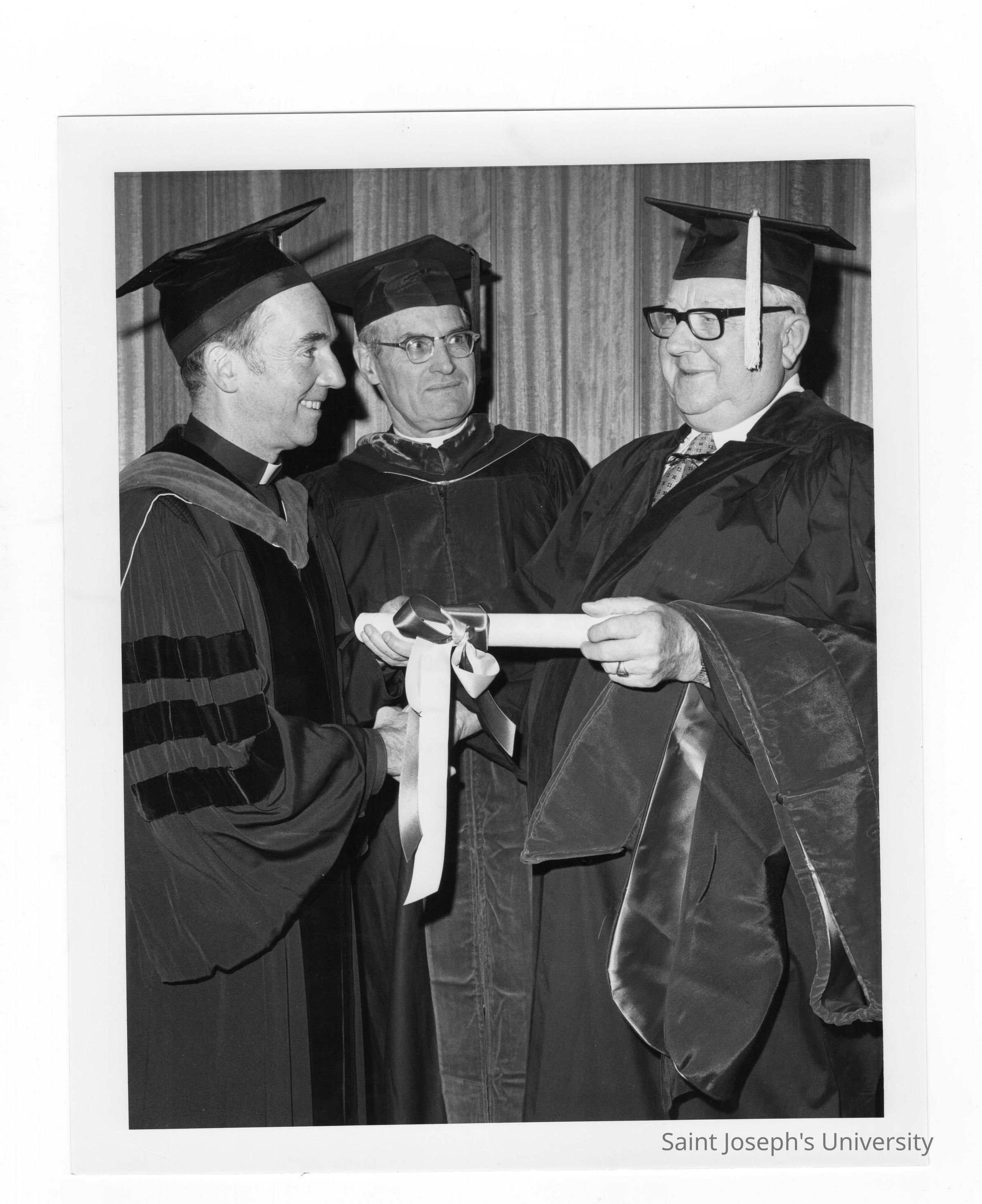 Terrence Toland, S.J., and Michael J. Smith, S.J., with honorary degree recipient, Harry Boyer (?)