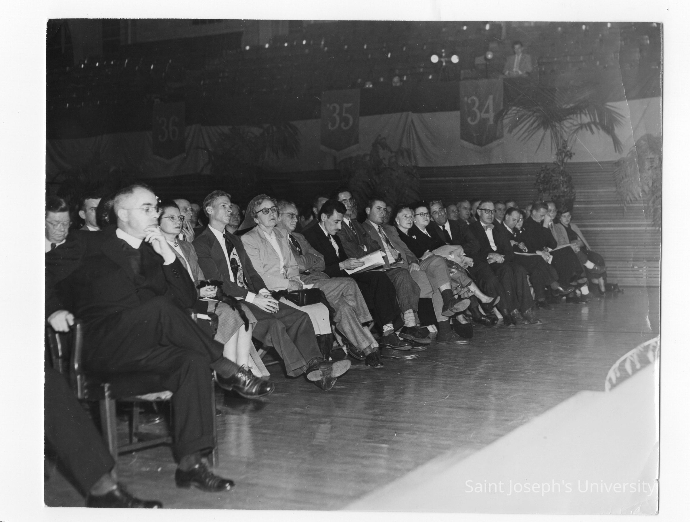 Audience listening to Labor symposium on industrial relations held October 26, 1951 in Flanigan Auditorium during centennial celebration.