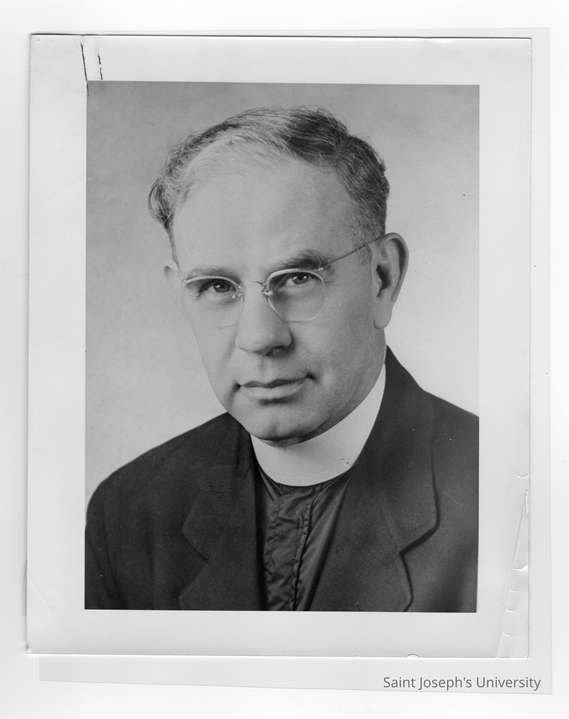 Portrait Leo C. Brown, S.J.,(St. Louis University) who spoke at labor symposium on industrial relations held October 26, 1951 in Flanigan Auditorium during centennial celebration.