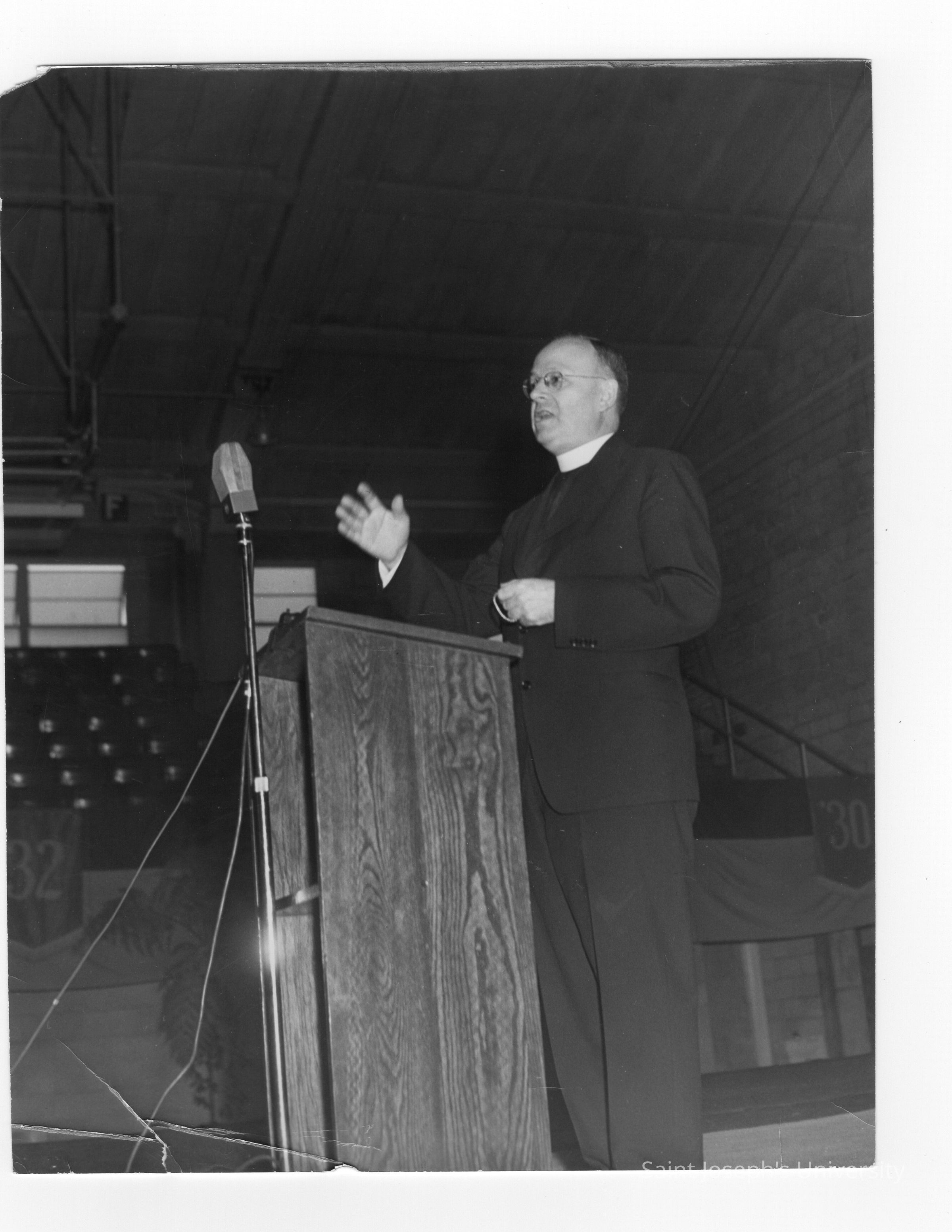 Allan Farrell, S.J., addressing symposium on Jesuit education as part of centennial celebration, October 27, 1951.