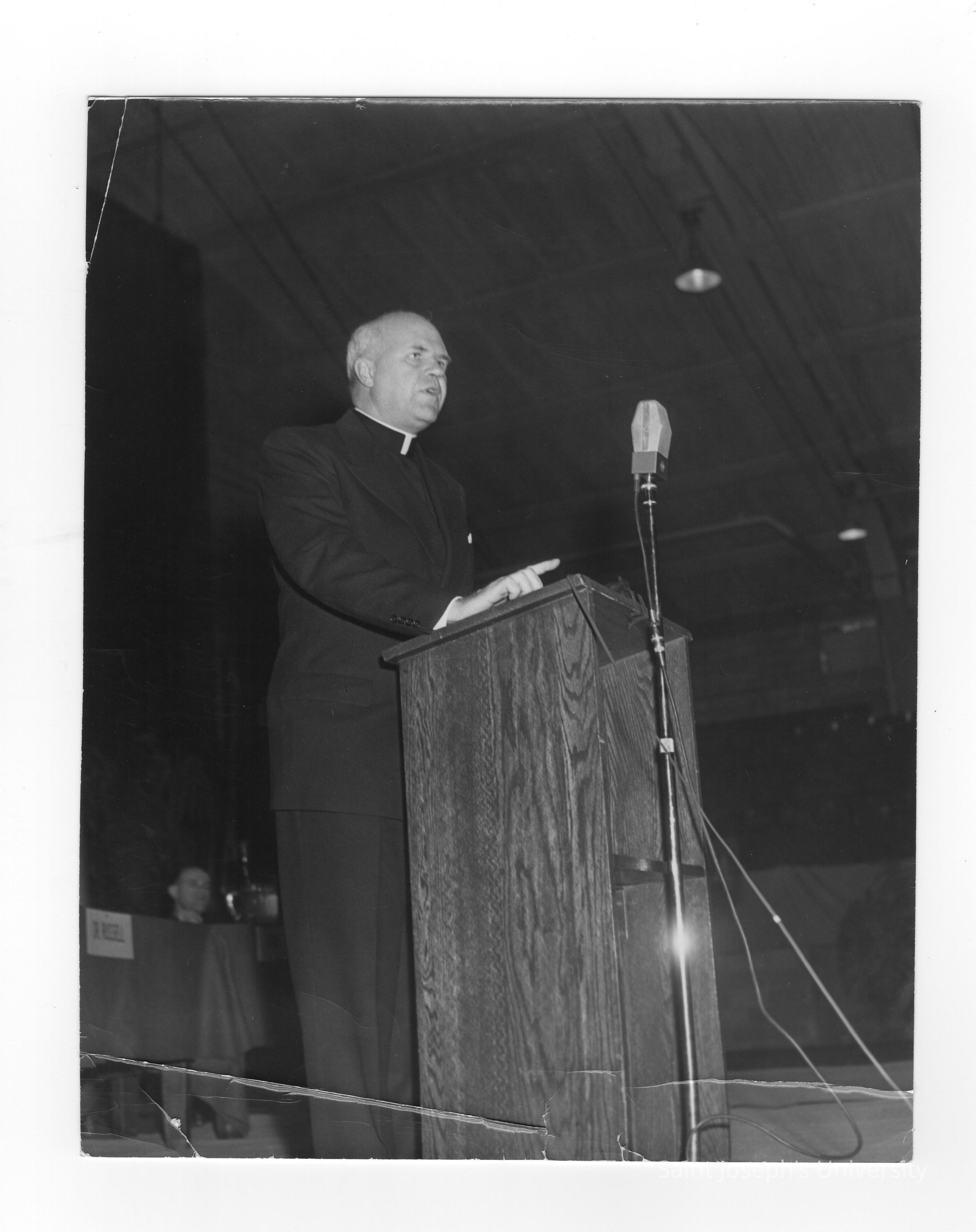 Hunter Guthrie, S.J., addressing symposium on Jesuit education as part of centennial celebration, October 27, 1951.