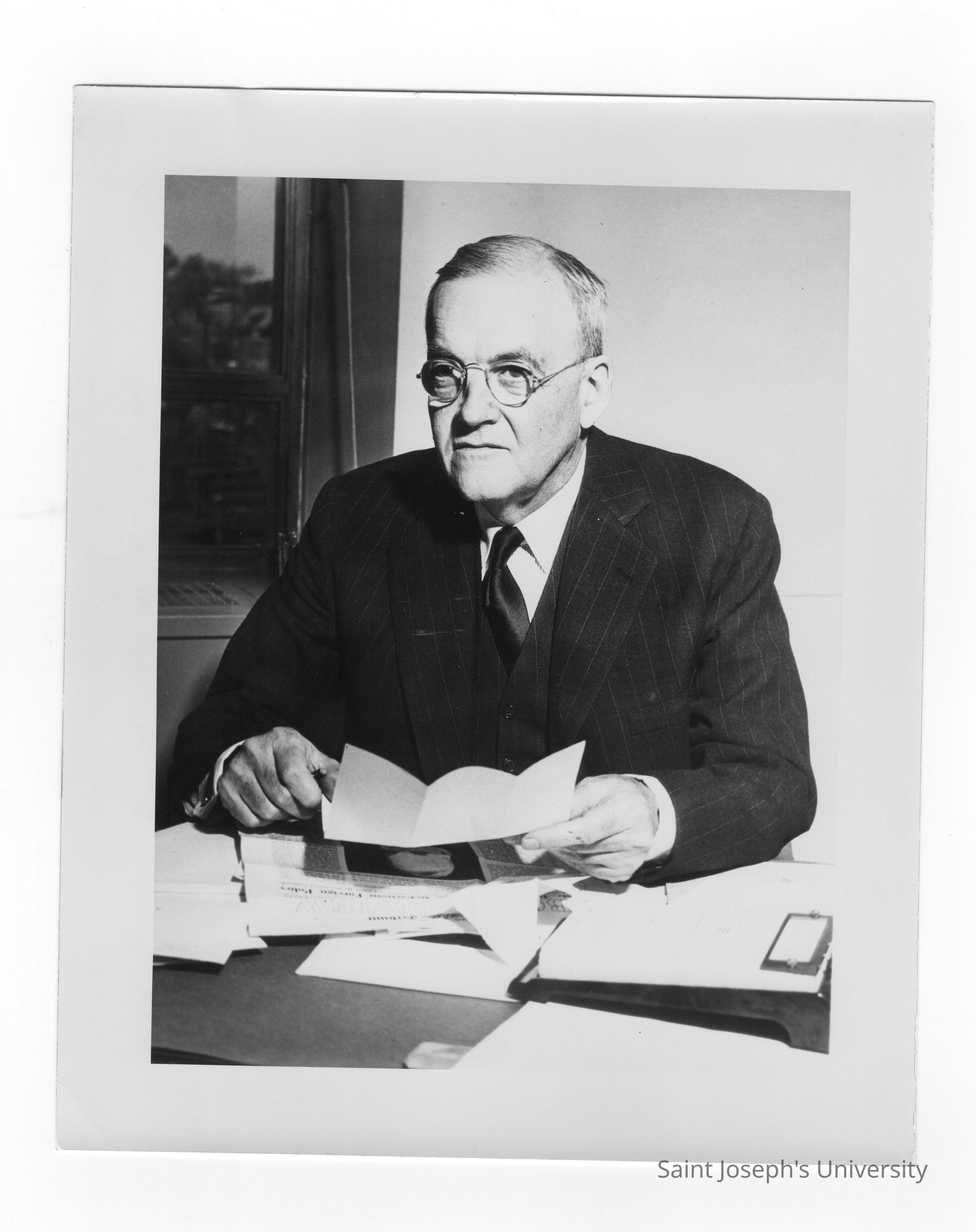 Photograph of John Foster Dulles, c. 1951, when serving as U.S. Ambassador at Large. Dulles received honorary degree at academic convocation, October 28, 1951, as part of centennial celebration.