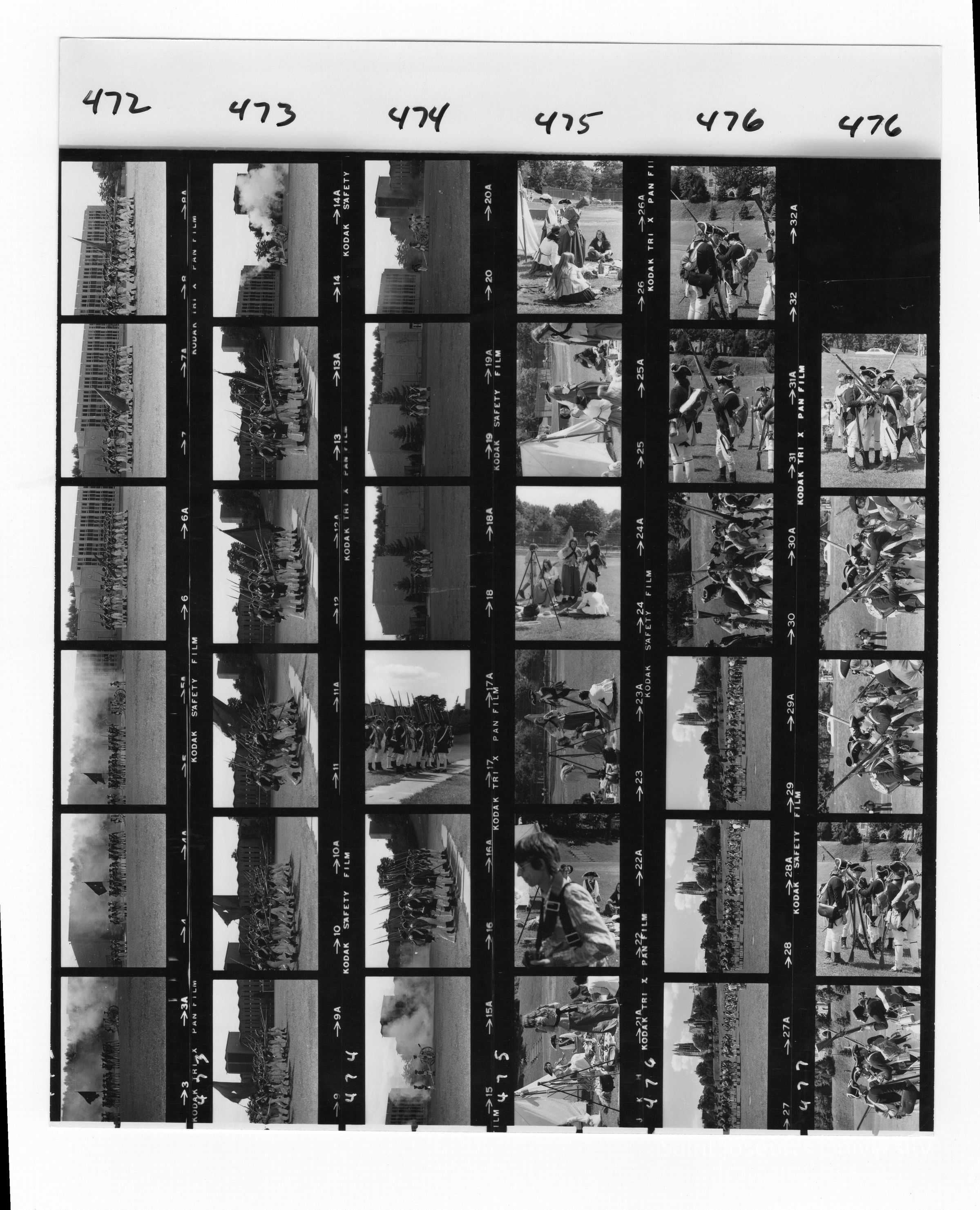 Reenactment of Revolutionary War event on Finnessey Field in celebration of U.S. Bicentennial and 125th anniversary of SJC in 1976.