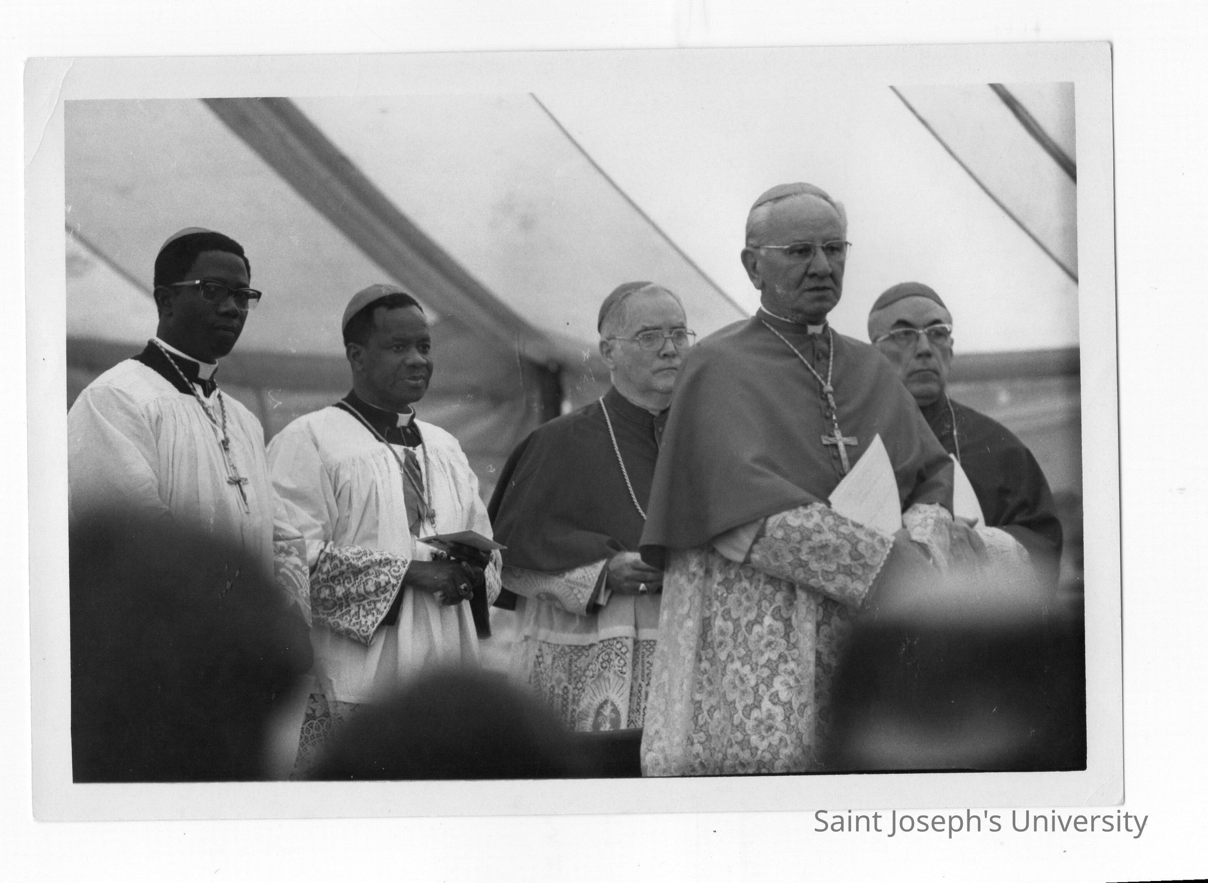 Procession of clergy including Cardinal John Krol and others to Mass held July 31, 1976, on Gest Lawn during SJC 125th anniversary celebration.