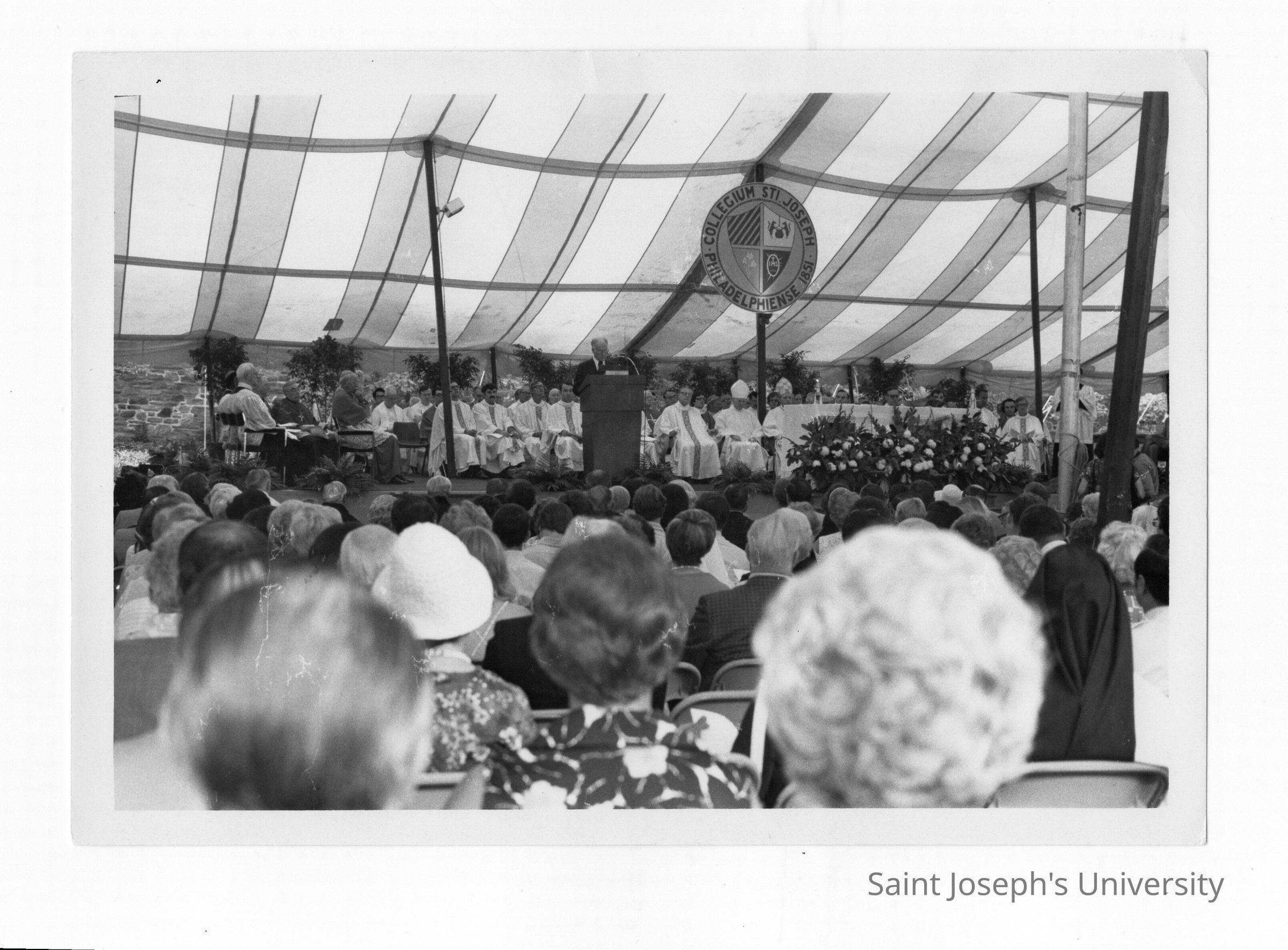 Mass held July 31, 1976, on Gest Lawn prior to academic convocation during SJC 125th anniversary celebration.