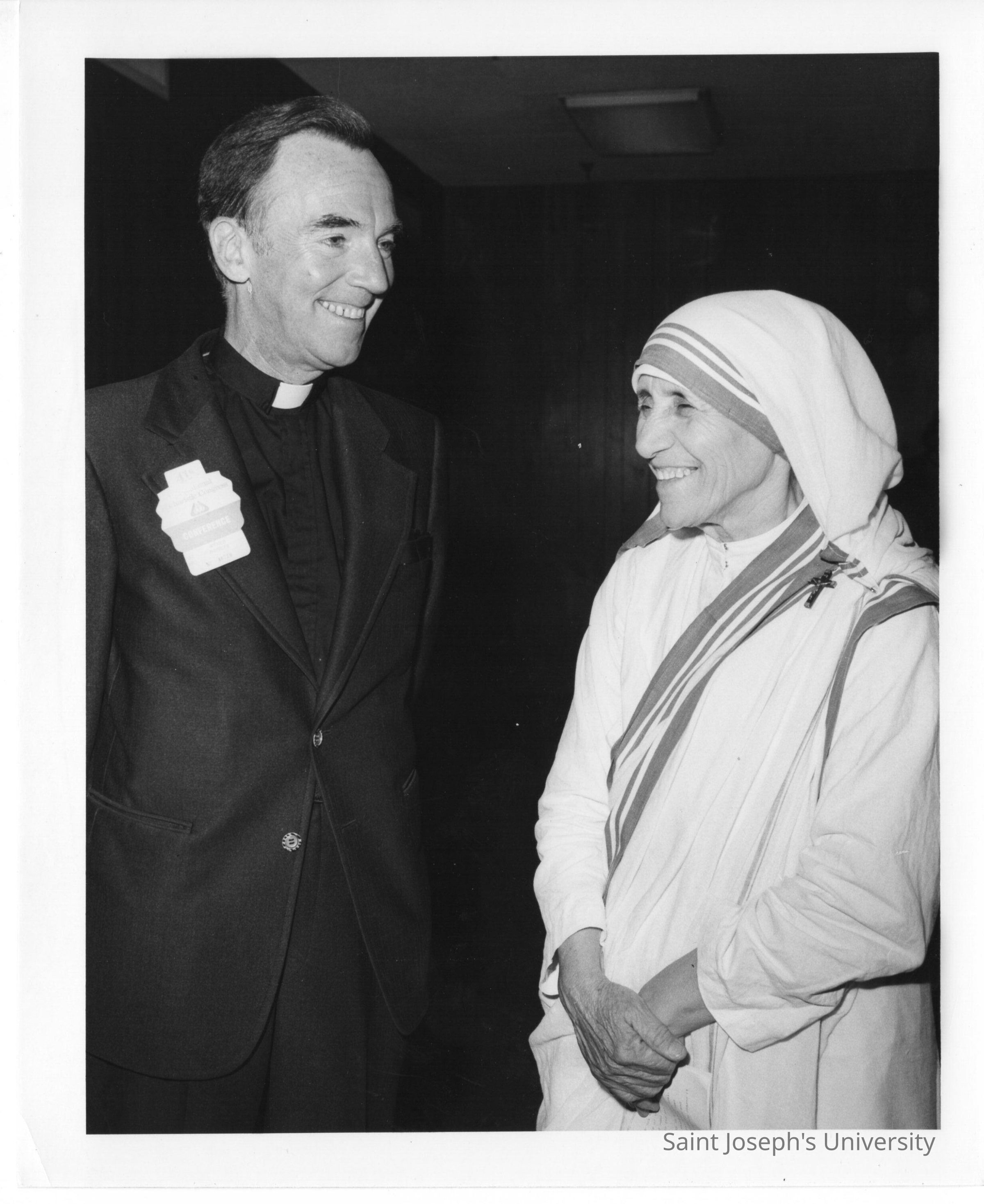 Terrence Toland, S.J., and Mother Teresa at International Eucharistic Congress, symposium on hunger, August 2, 1976, held at Philadelphia Civic Center.