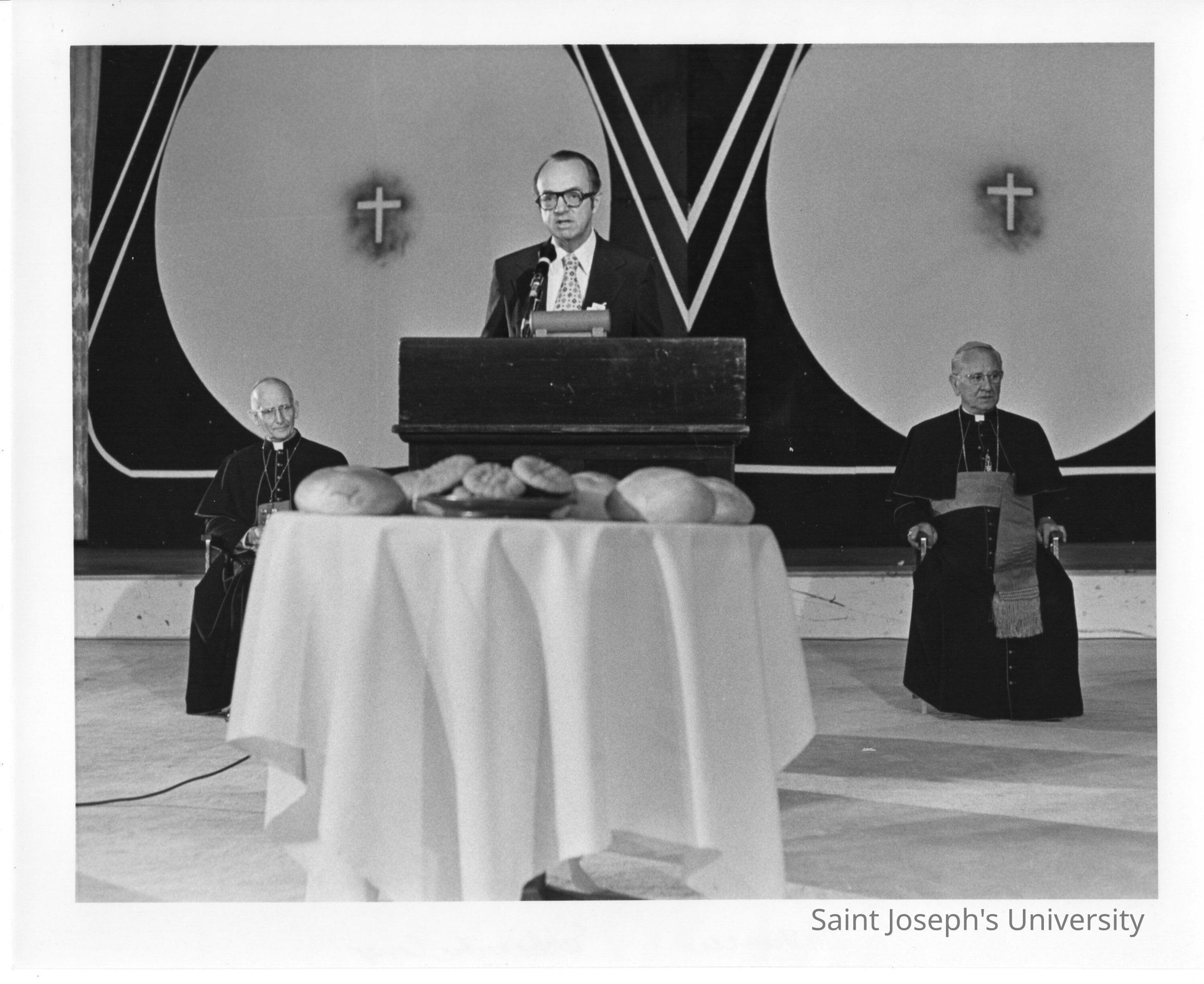 Dr. Thomas Melady giving address at International Eucharistic Congress, symposium on hunger, August 2, 1976, held at Philadelphia Civic Center.