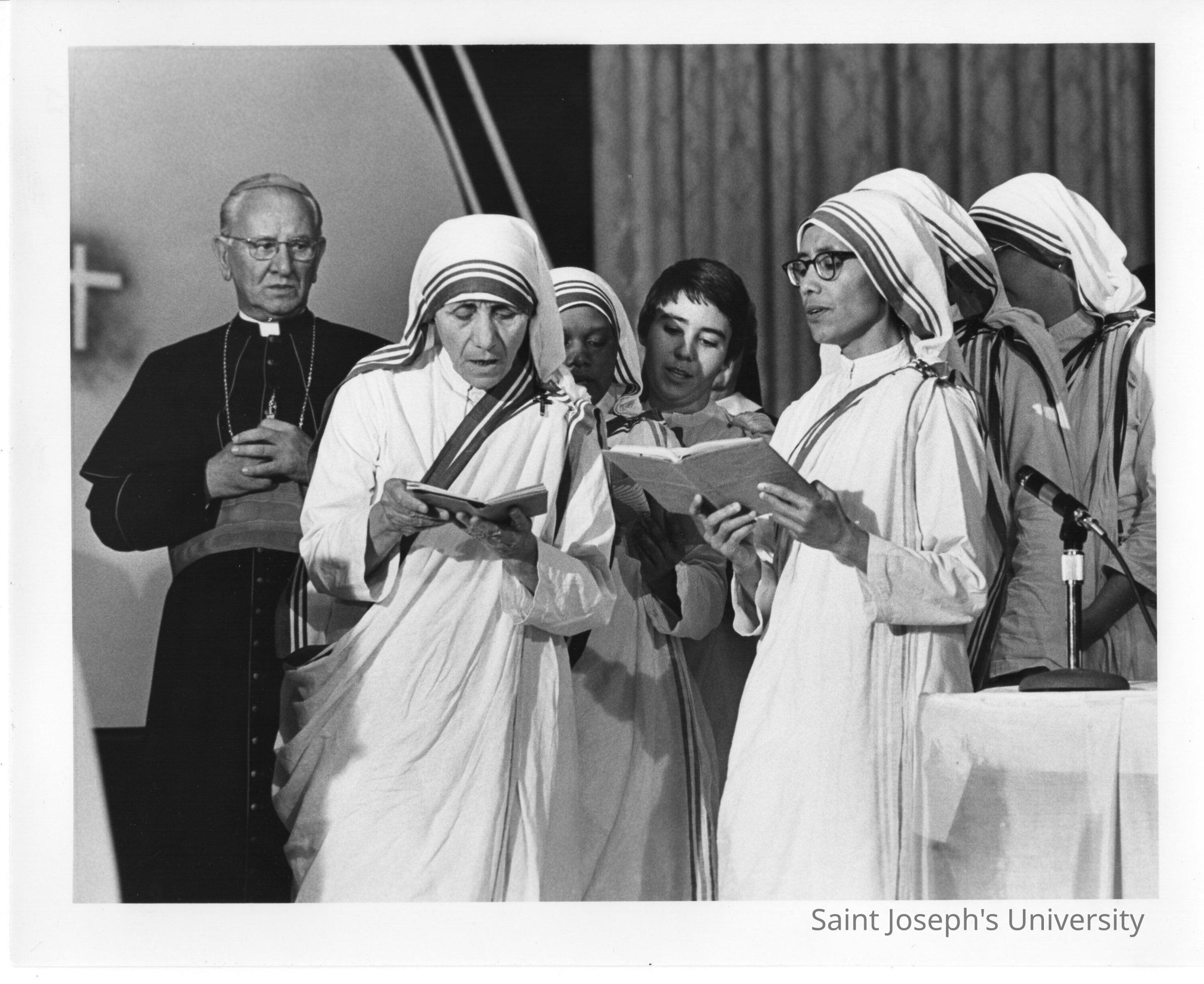 Prayers before the bread breaking ceremony during International Eucharistic Congress, symposium on hunger, August 2, 1976, held at Philadelphia Civic Center. Includes Mother Teresa, Cardinal John Krol, and others.
