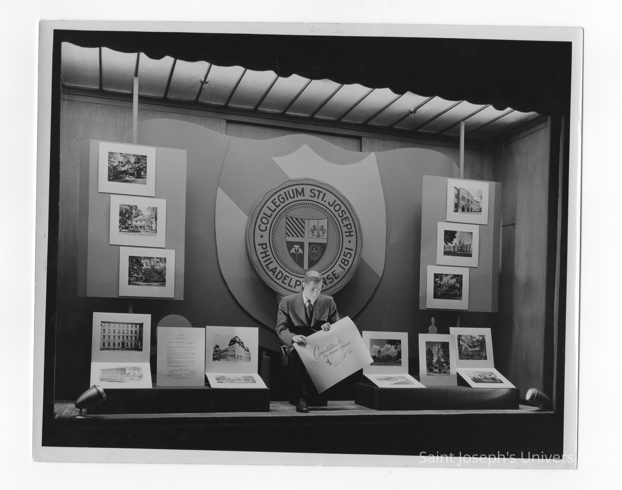 Display in the John Wanamaker department store window celebrating the centennial of Saint Joseph's College in 1951.