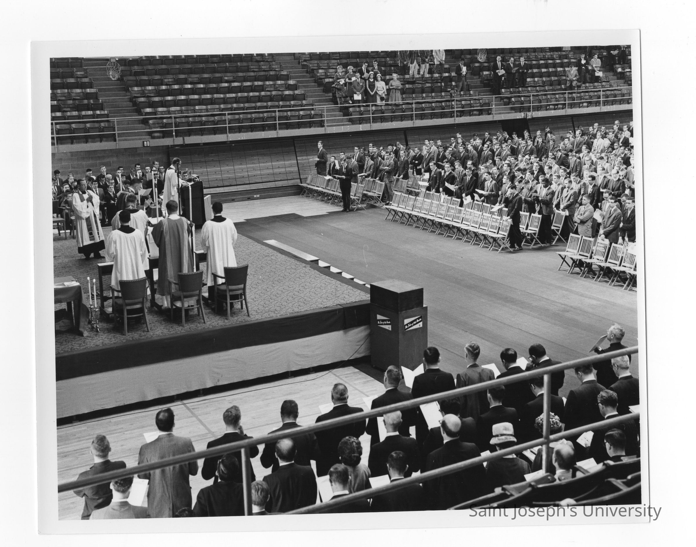 View of Mass of the Holy Spirit in the Field House, October 8, 1963.