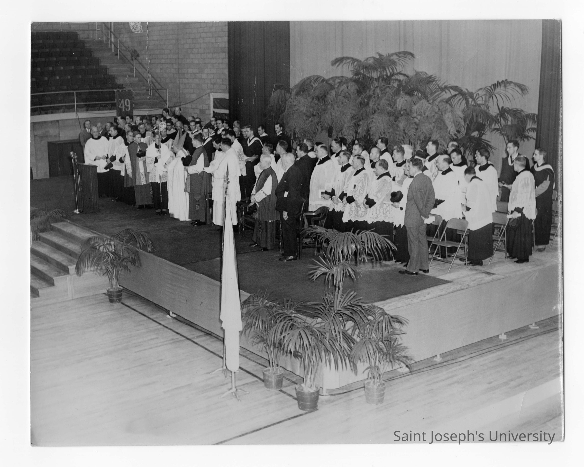 Bishop Hyland's reception in Field House following mass, January 8, 1950.