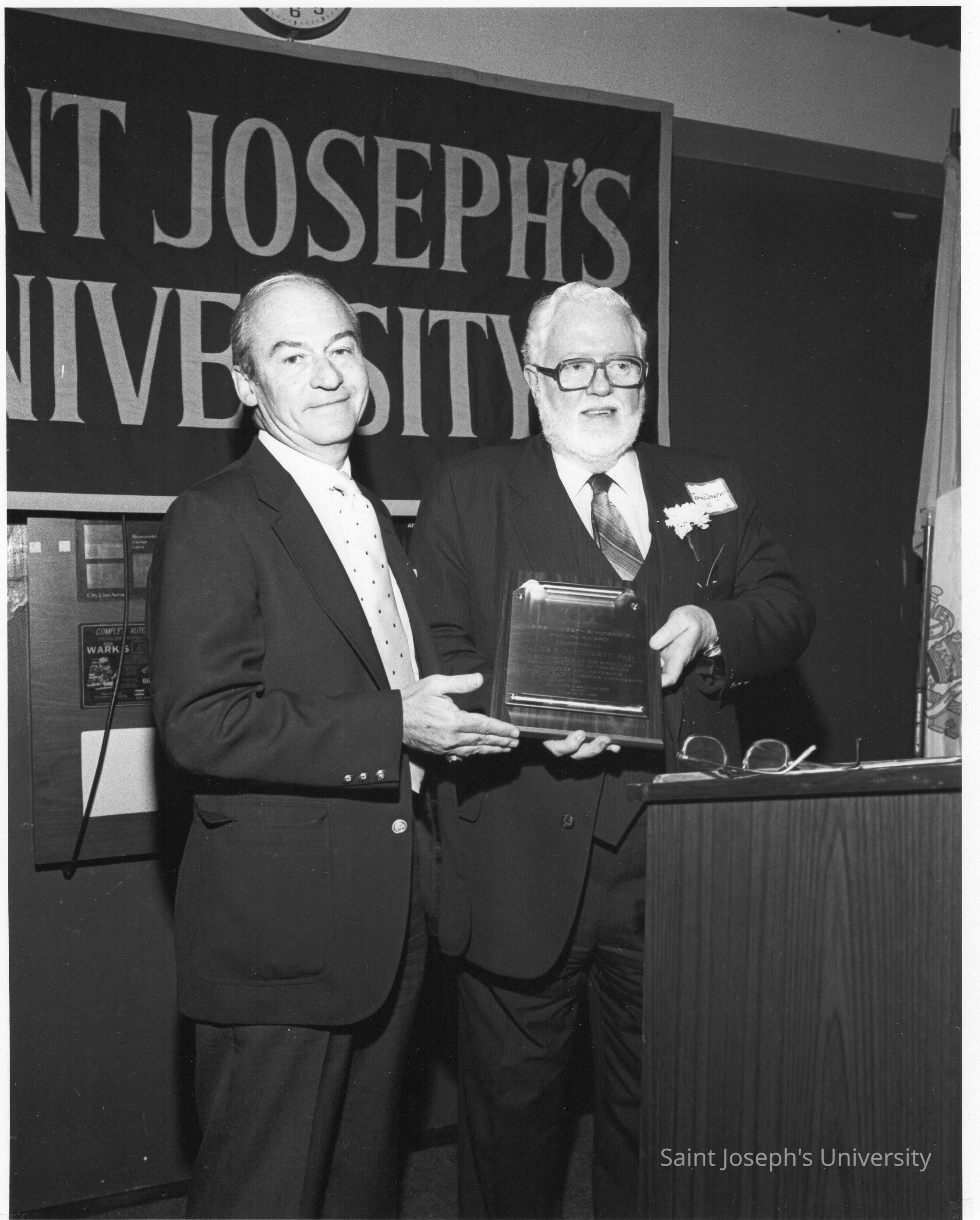 Dr. James E. Dougherty, 1985 recipient of Hogan Alumni Award with Thomas F. X. Rafferty.