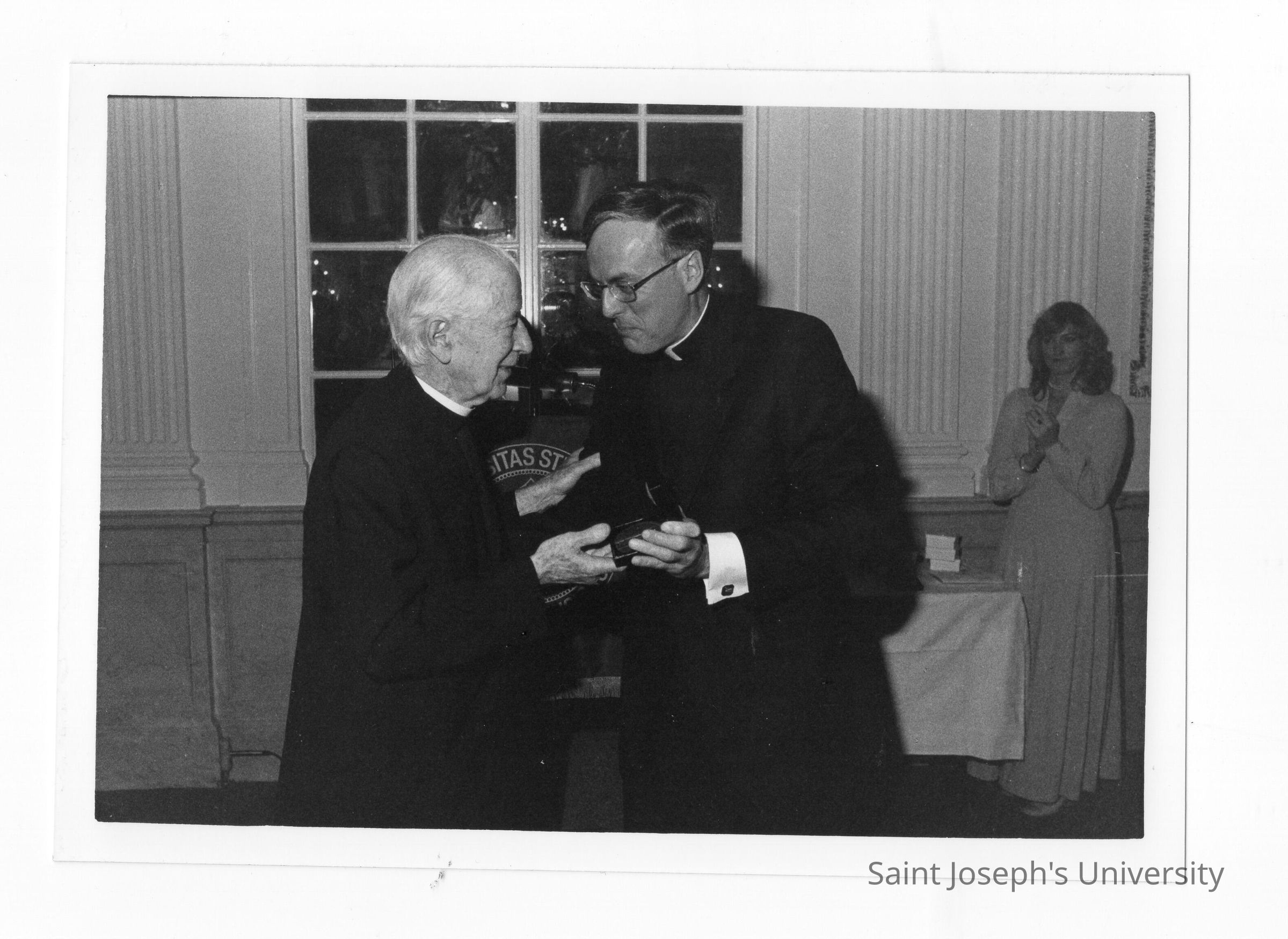 Donald I. MacLean, S.J., with Bertholomew Sheehan, S.J. at alumni awards dinner, c. 1980.