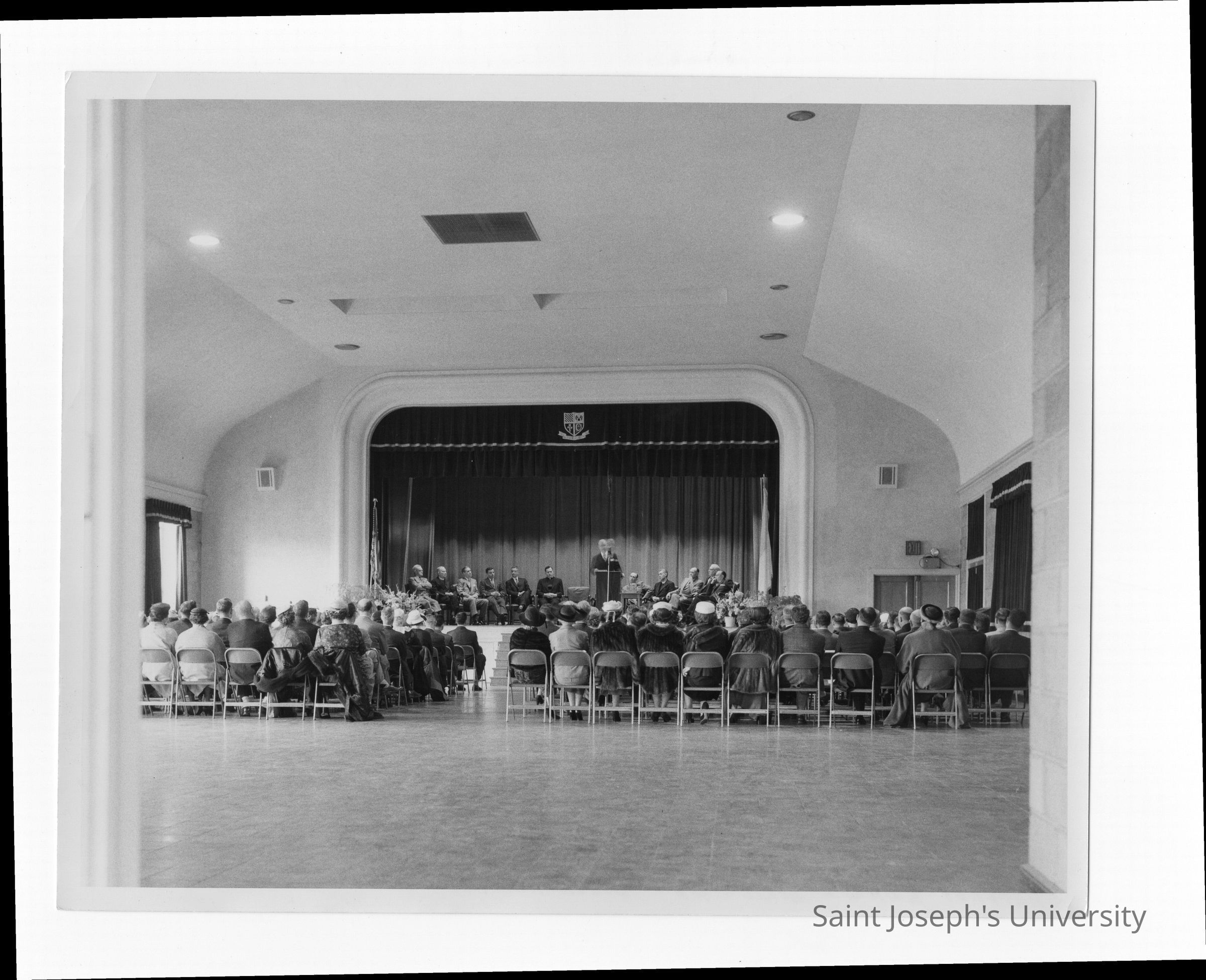 Shaffery award ceremony in Flanigan auditorium, April 8, 1956, with Dr. Francis Braceland.