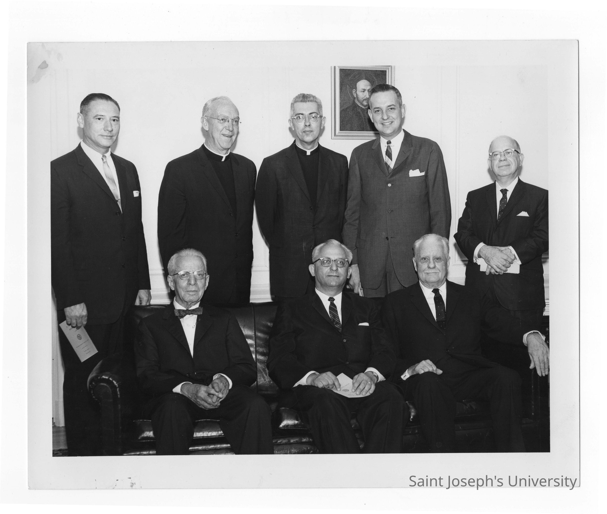 Dr. William Sodeman, 1962 Shaffrey award winner, with J. Joseph Bluett, S.J., Edmund Brogan, Mark Bauer, S.J., Michael Devine, Joseph Scareno, J Parson Schaeffer, Bernard Widmann.