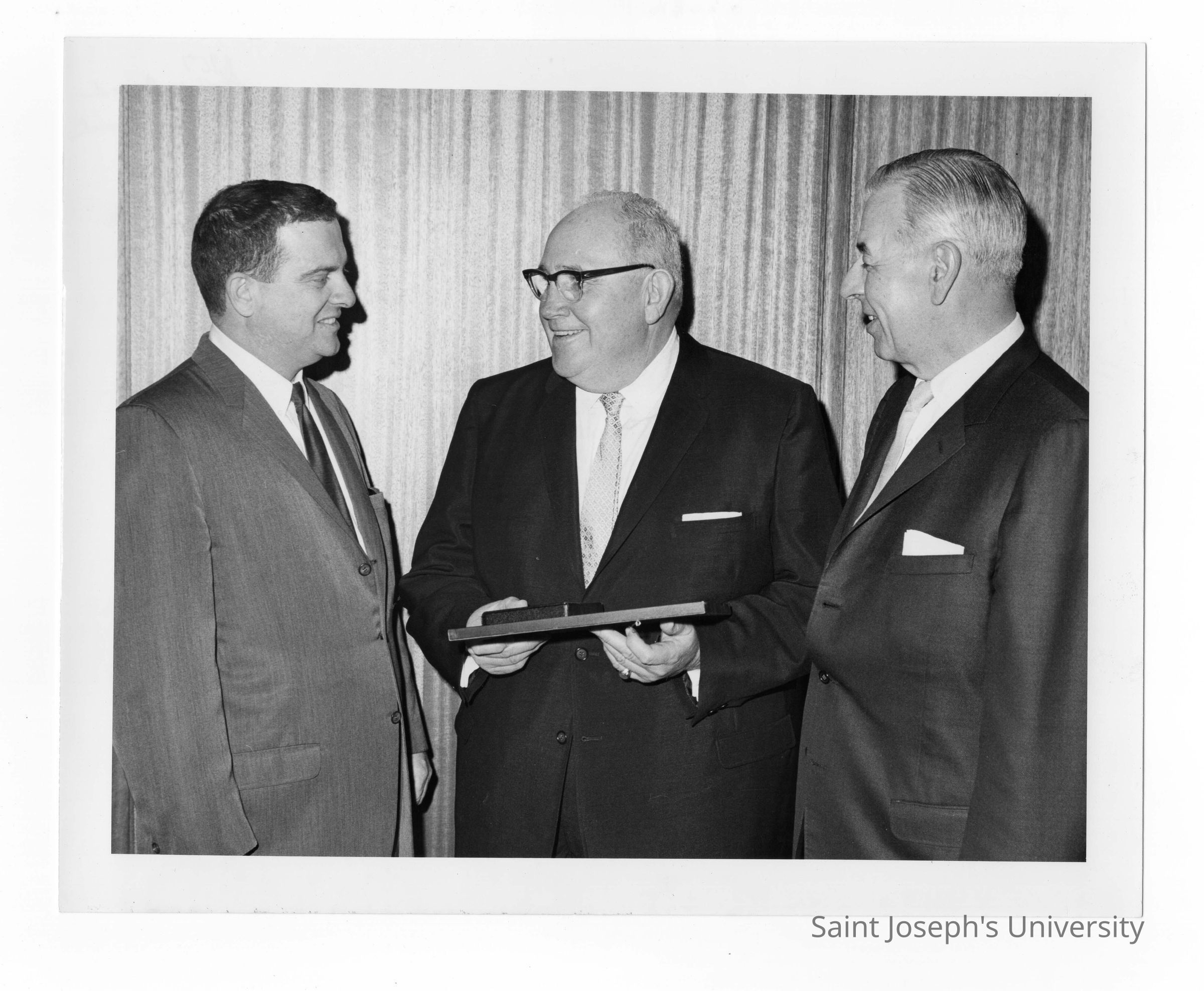 Shaffrey award recipient, Dr. John McCormick, being congratulated by two individuals, April 30, 1970.