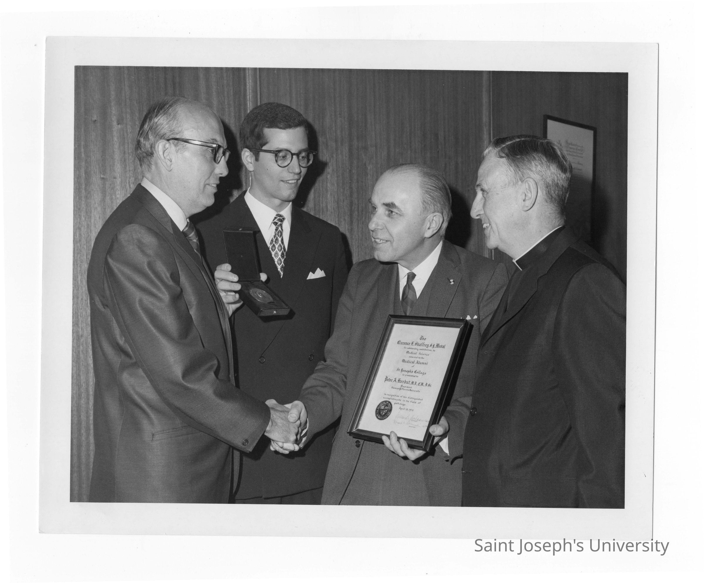 Shaffrey award recipient, Dr. Peter A. Herbut, receiving congratulations from three others, April 19, 1970.