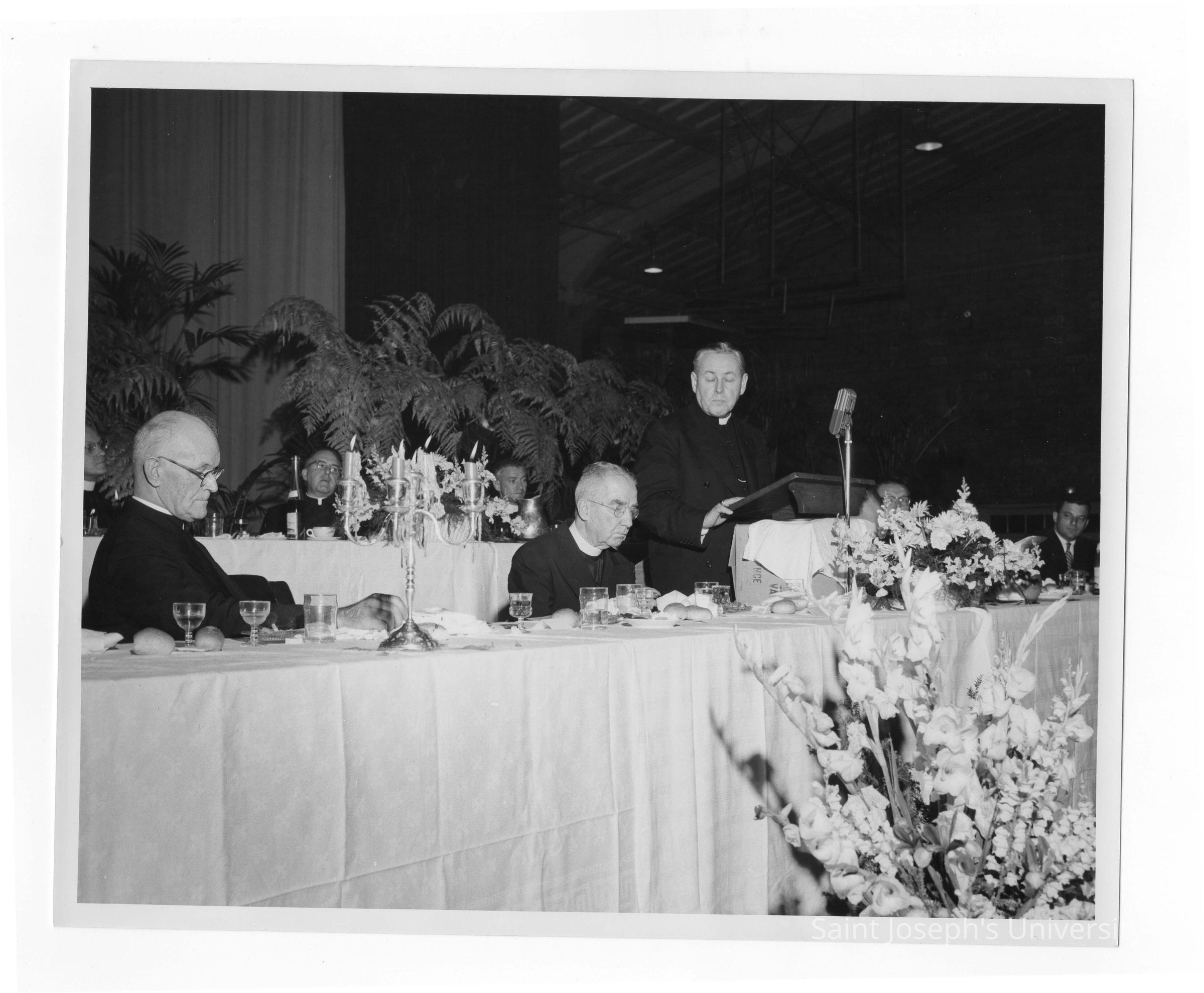 Testimonial dinner for Joseph S. Hogan, S.J., with Bishop Joseph McShea, May 26, 1957.