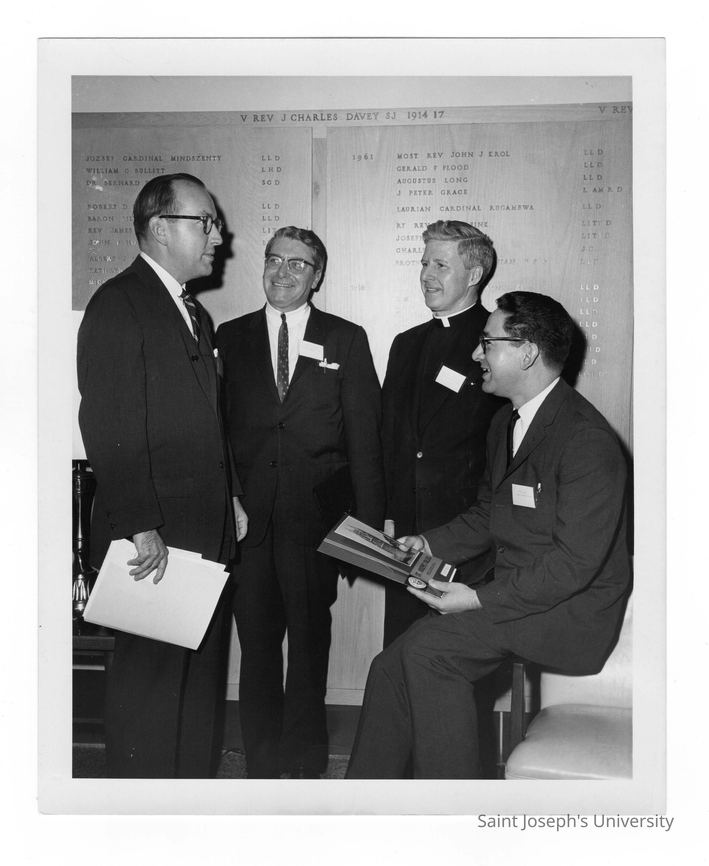 Thomas McCabe, Jr., John J. Spillane, Theodore Purcell, S.J., John Meli at Business Ethics Workshop at SJC, December 4, 1964.