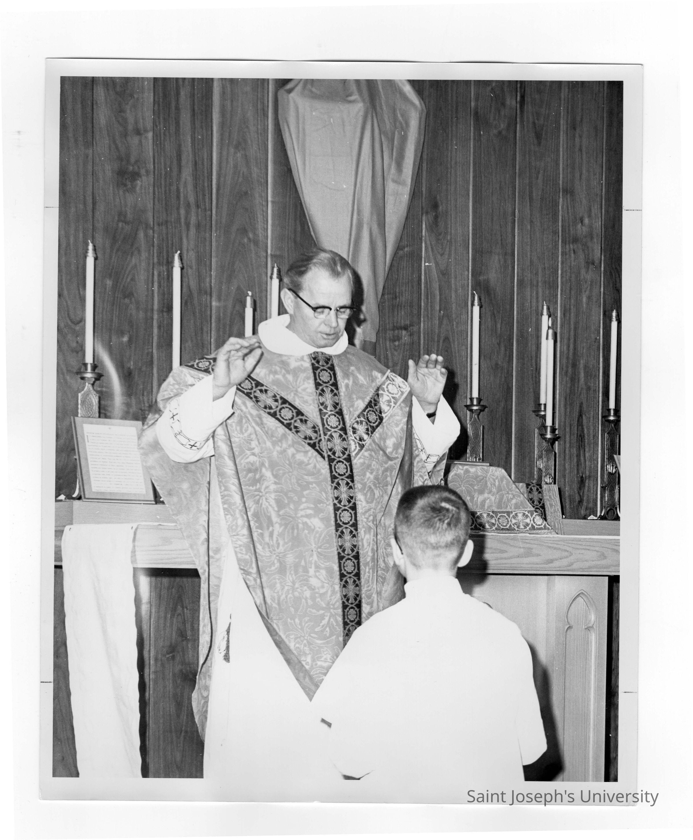 Father Dooley of the Dominican order at mass during Saint Joseph's week, March 1964.