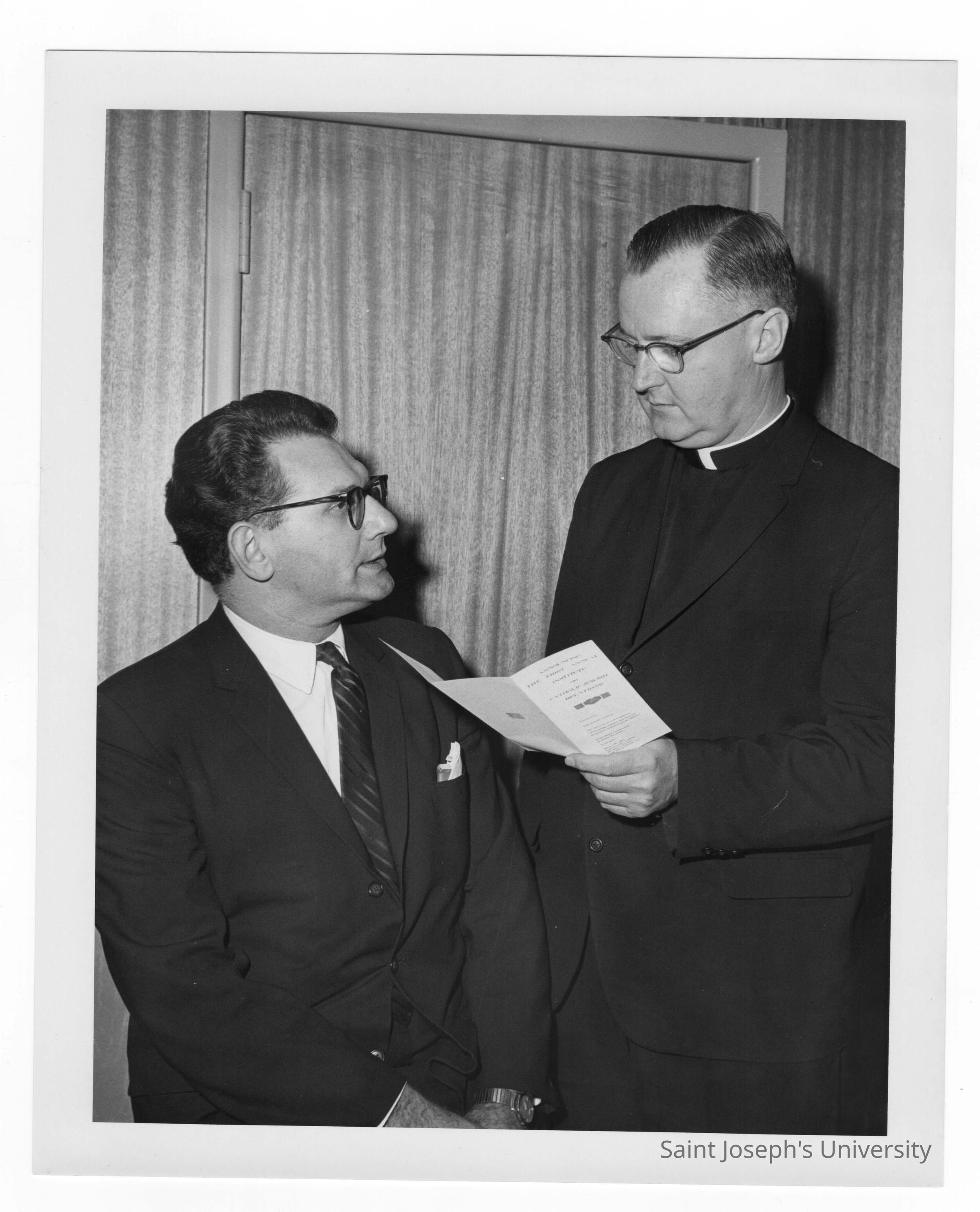 Photo of some individuals attending First Annual Institute on Catholic-Jewish relations, including Rabbi Marc Tanenbaum, and Msgr. George Higgins, March 5-6, 1967.