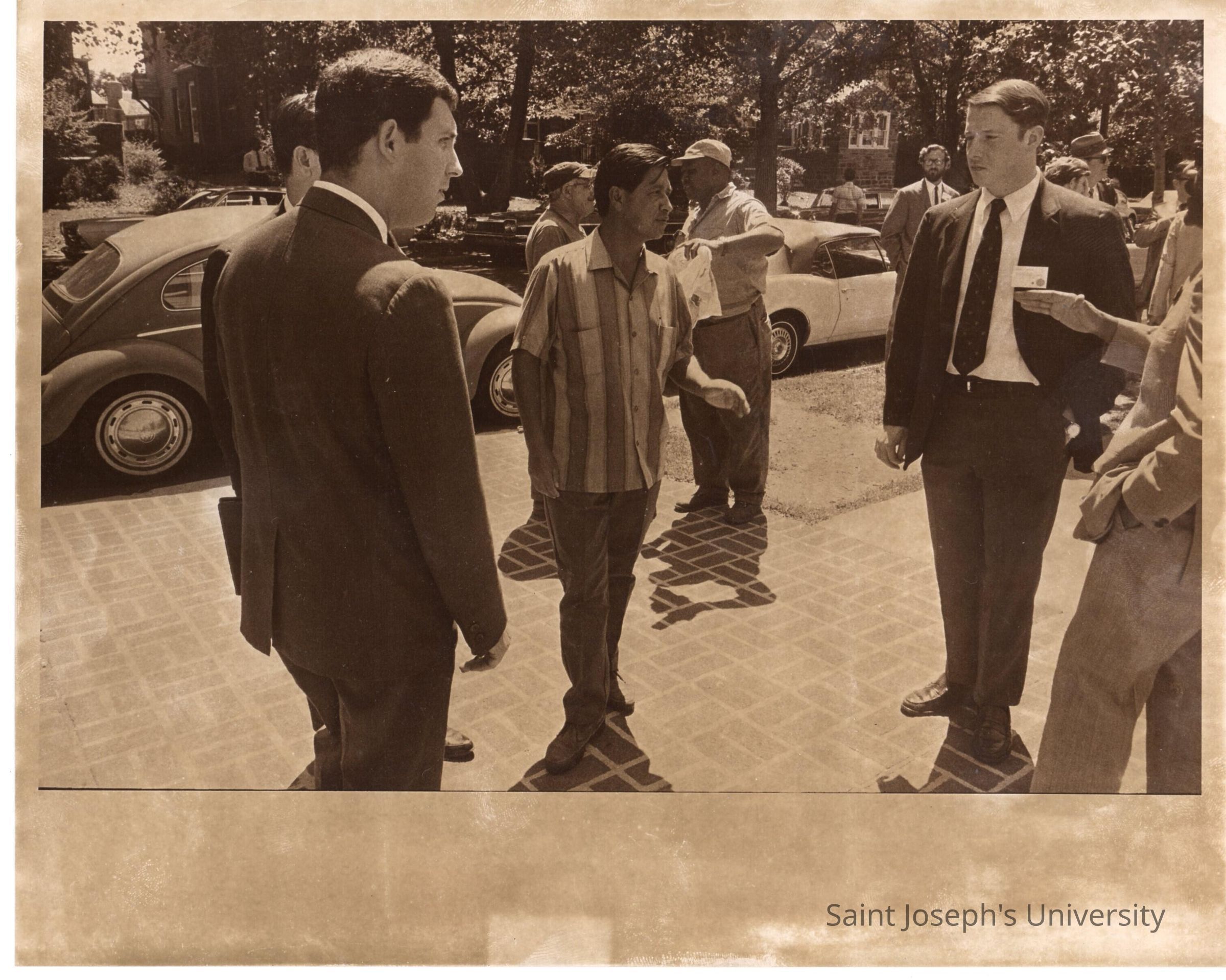 Pax Romana's 20th World Plenary Assembly meets at Saint Joseph's College, August 1968. Cesar Chavez arrives for the conference.