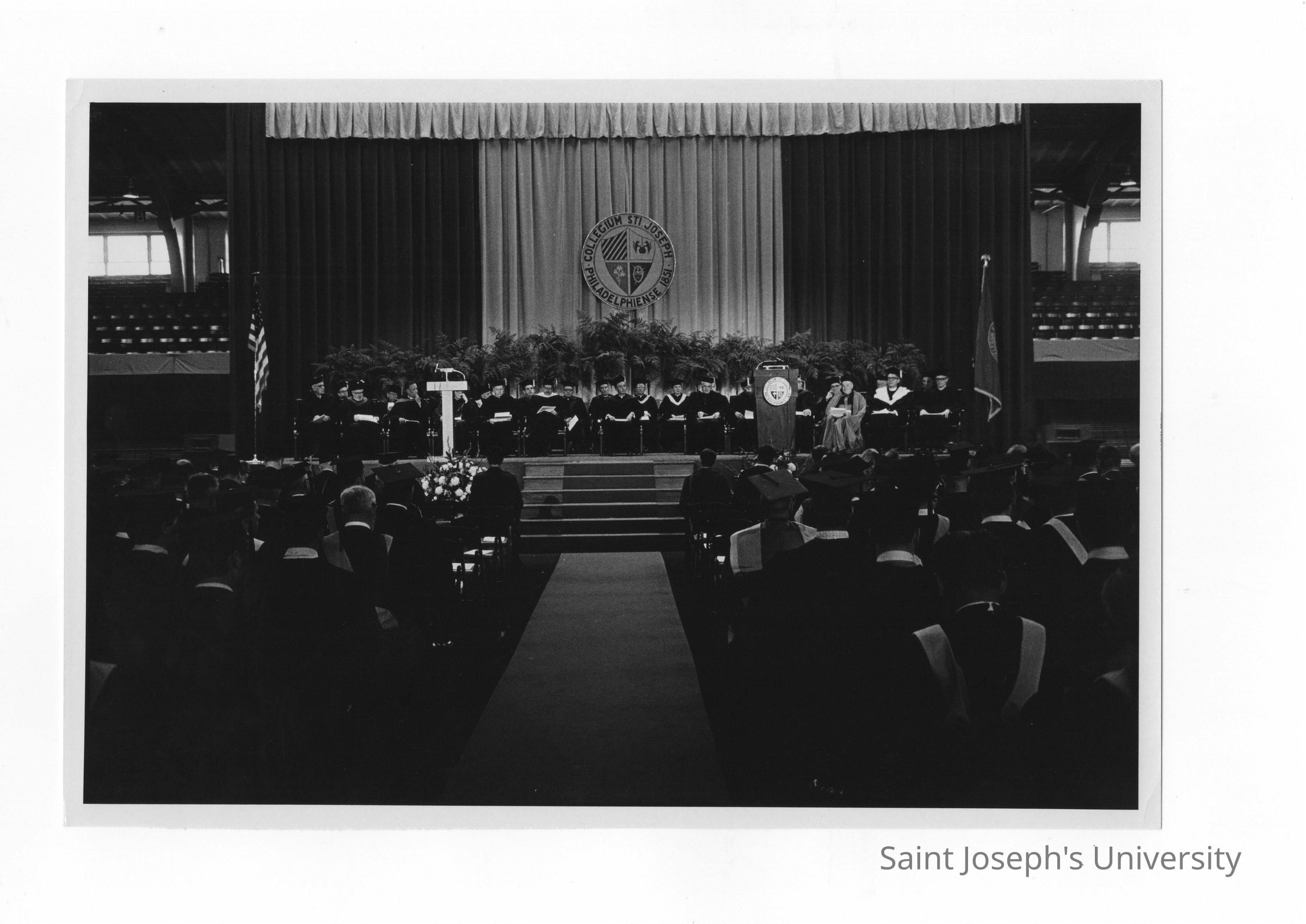 Inauguration of President Terrence Toland, S.J., November 14, 1968. View of stage and audience during ceremony.
