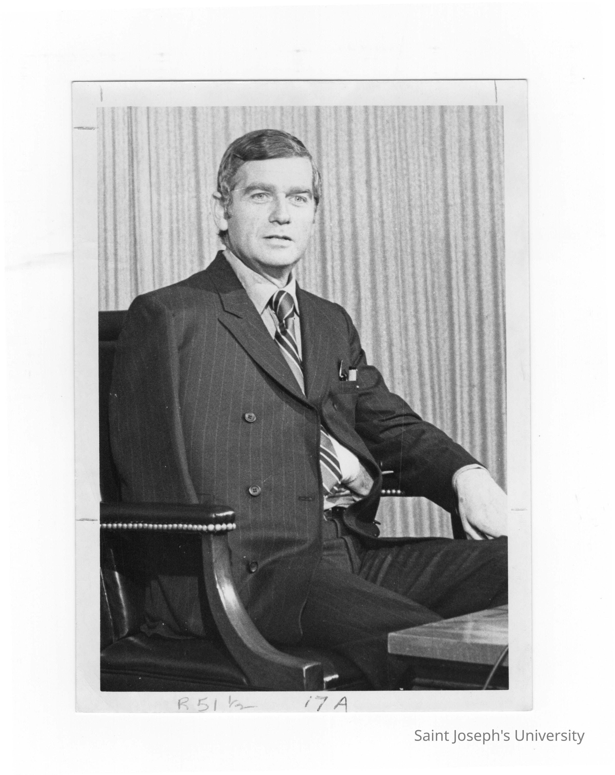 Photograph of Senator Mark Hatfield (pictured with broken arm) who visited SJC campus to deliver speech, October 4, 1970.