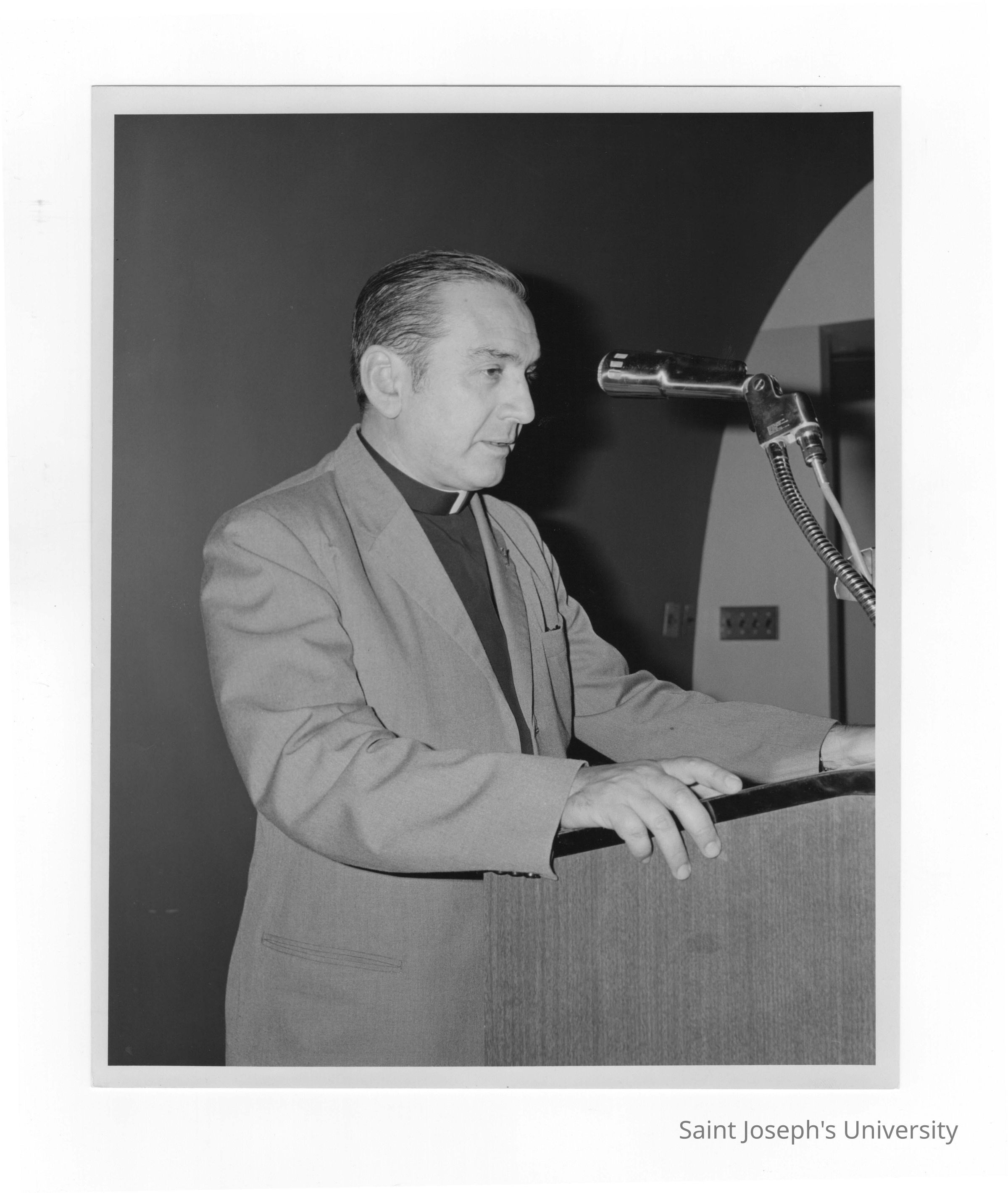 Renato Poblete, S.J. of Chile delivering talk on Salvador Allende, President of Chile, in Campion Hall, January 23, 1972.