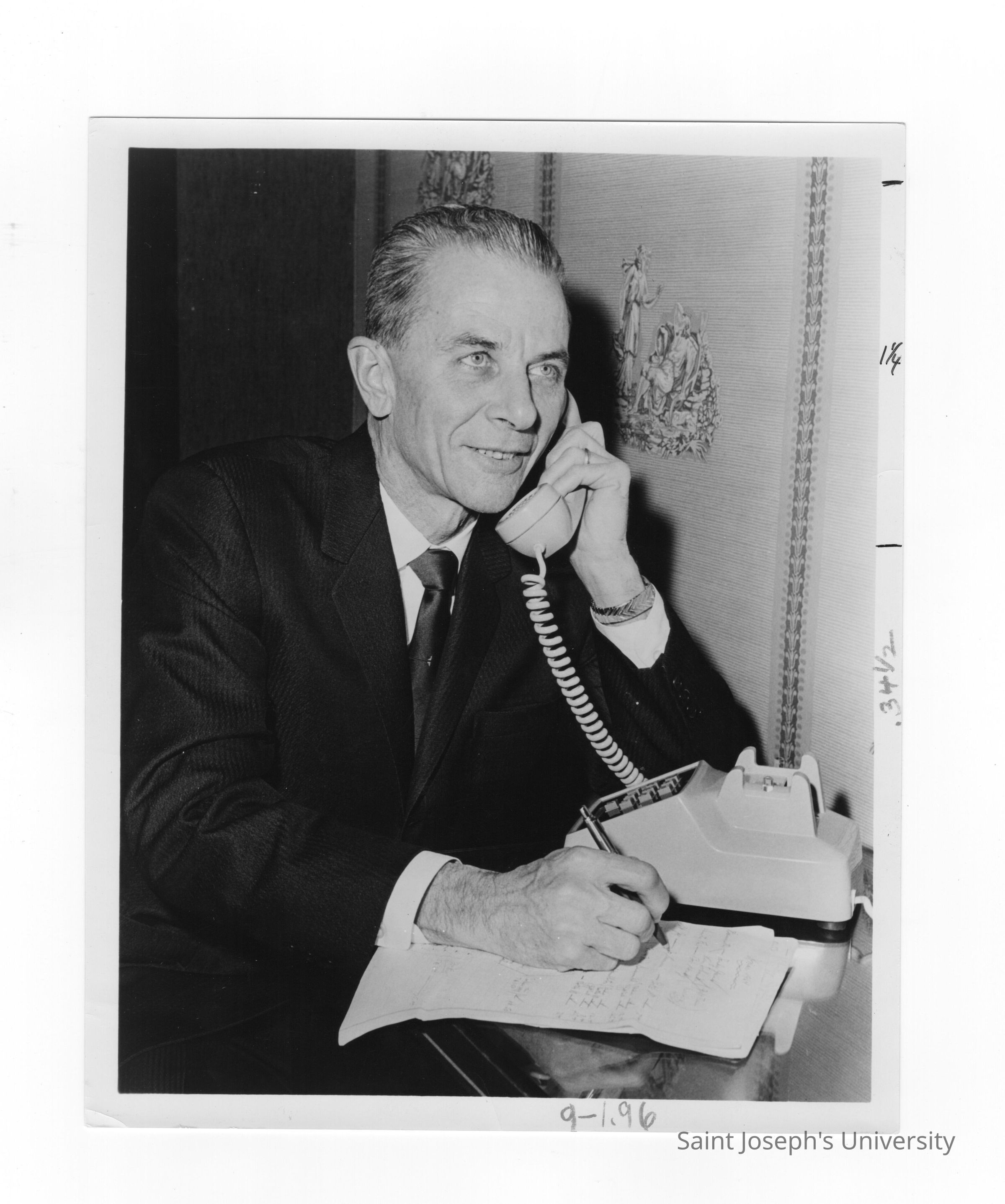 Charles Kraft, chairman of annual giving campaing of alumni association, talking on telephone, January 18, 1965.