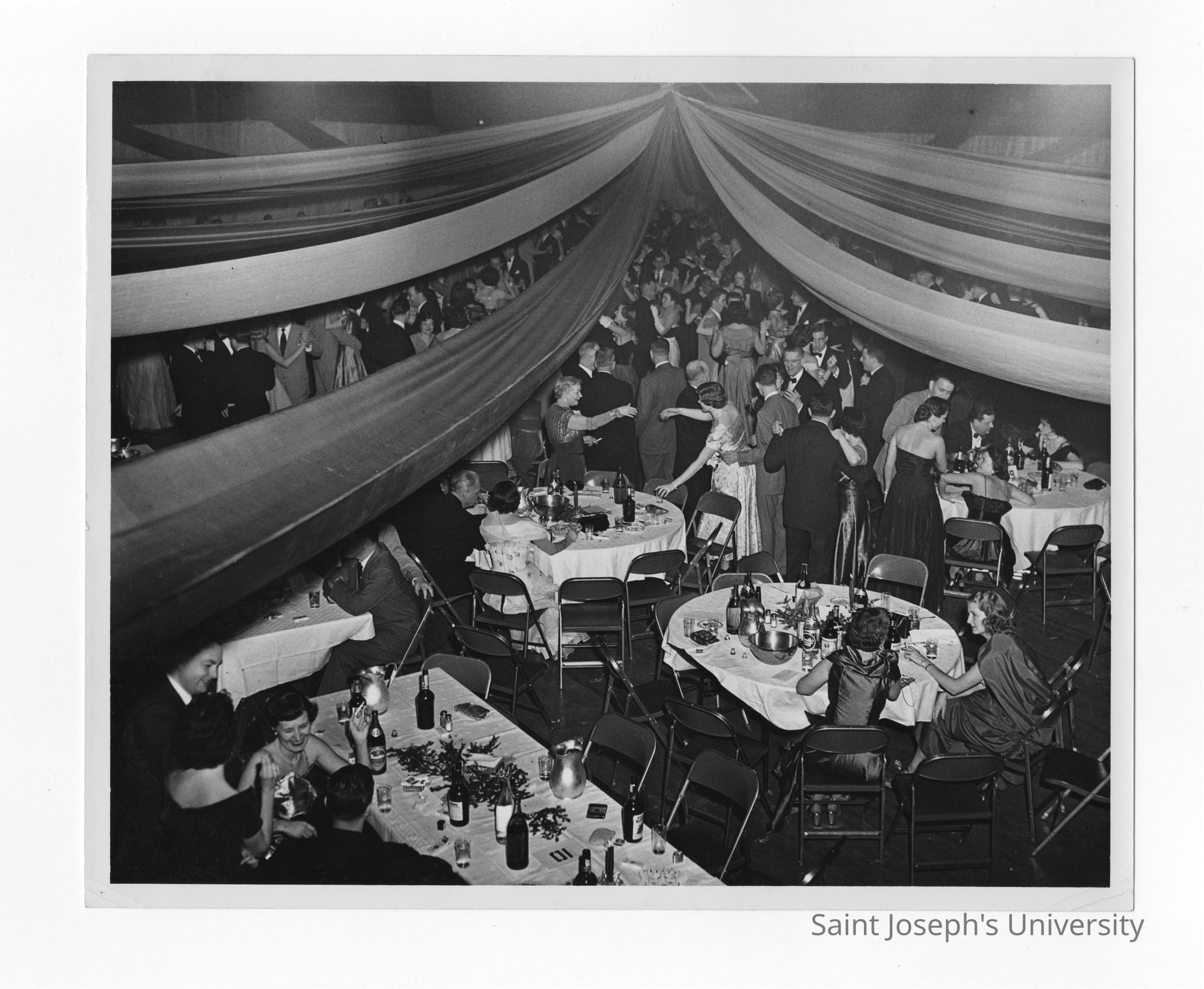 Alumni association dinner dance in decorated Field House, February 2, 1952.