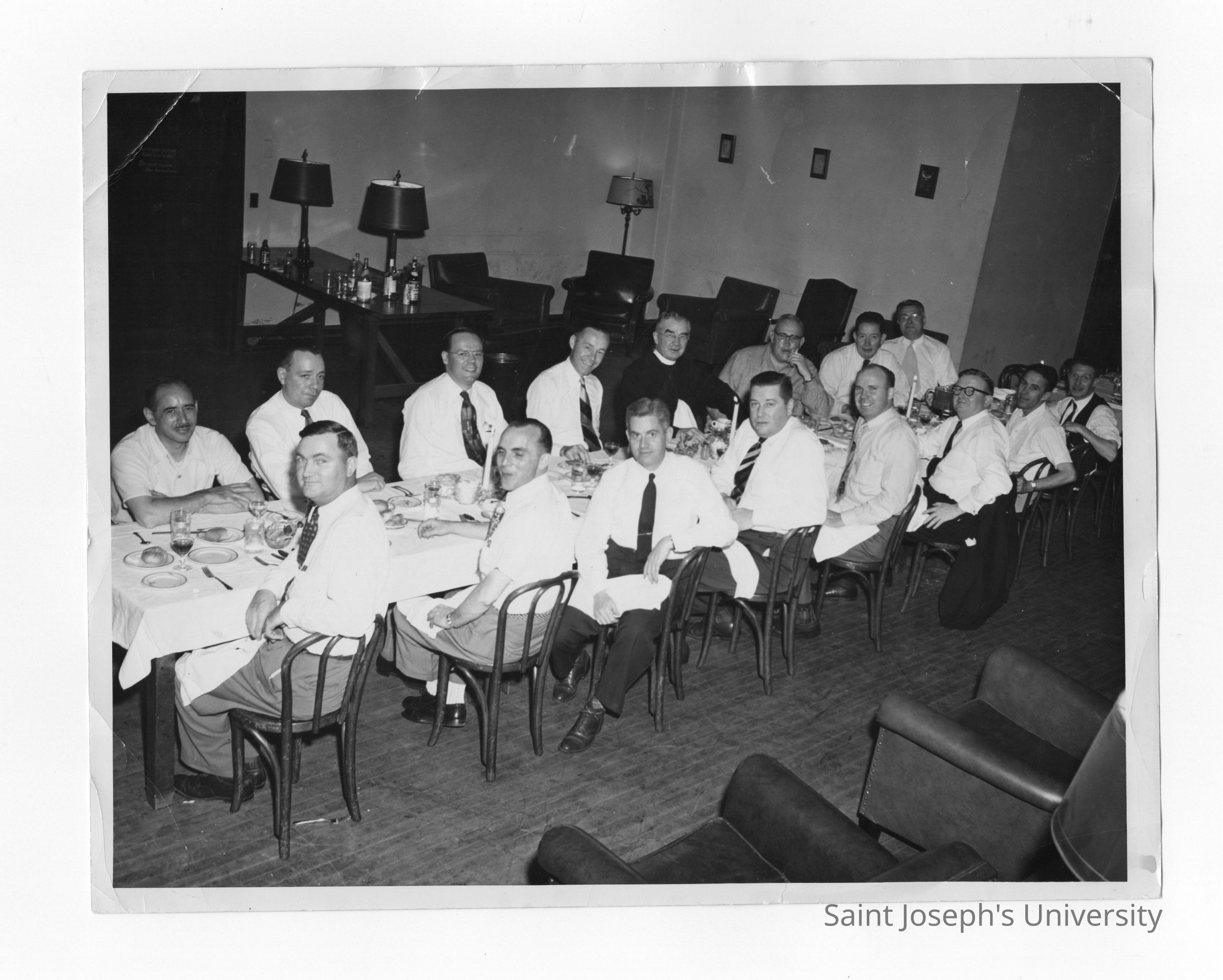 Alumni association members and Joseph S. Hogan, S.J., at dinner meeting, c. 1946.