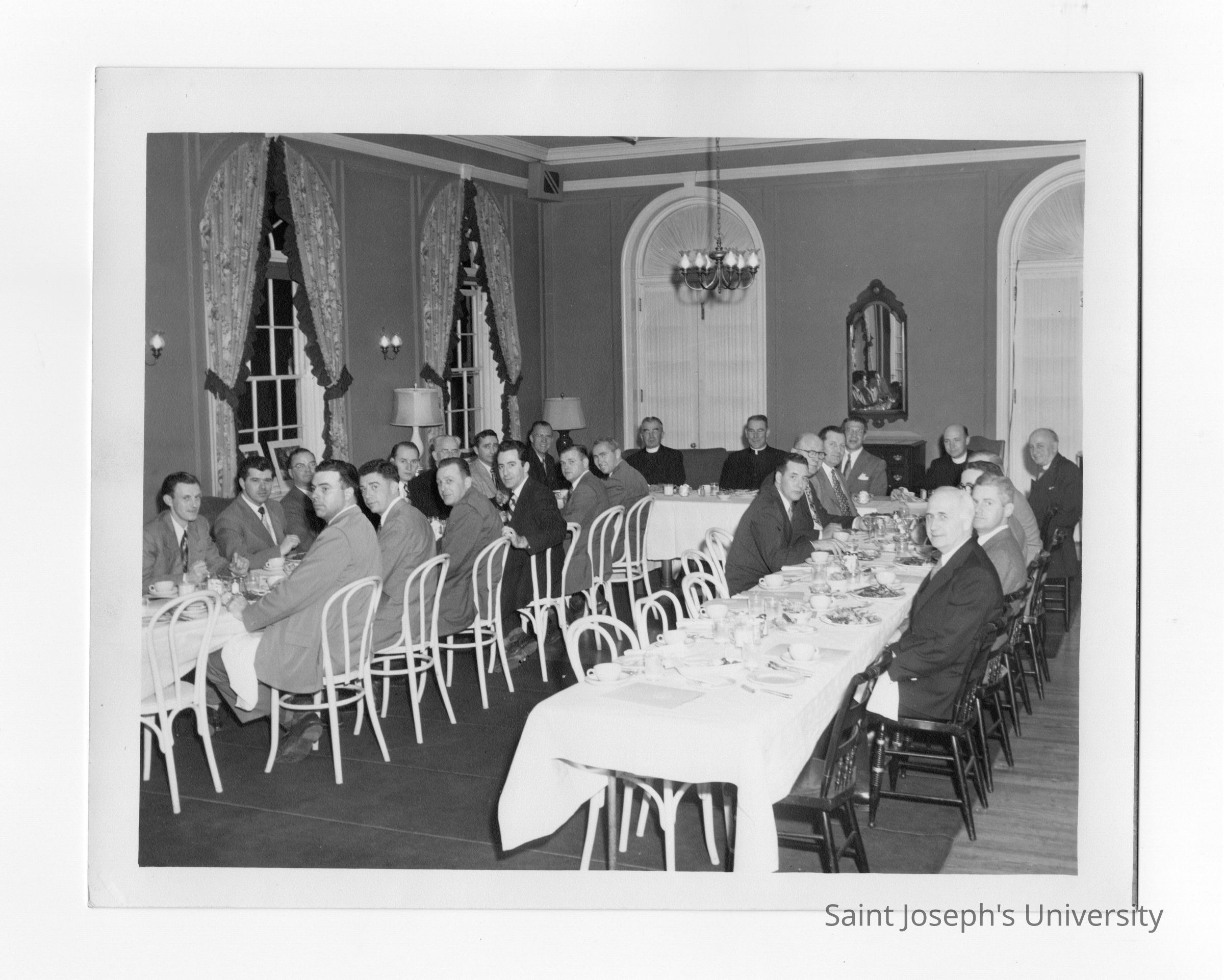 New Jersey alumni reunion at Trenton Country Club, December 4, 1947, including Joseph S. Hogan, S.J., and John J. Long, S.J.