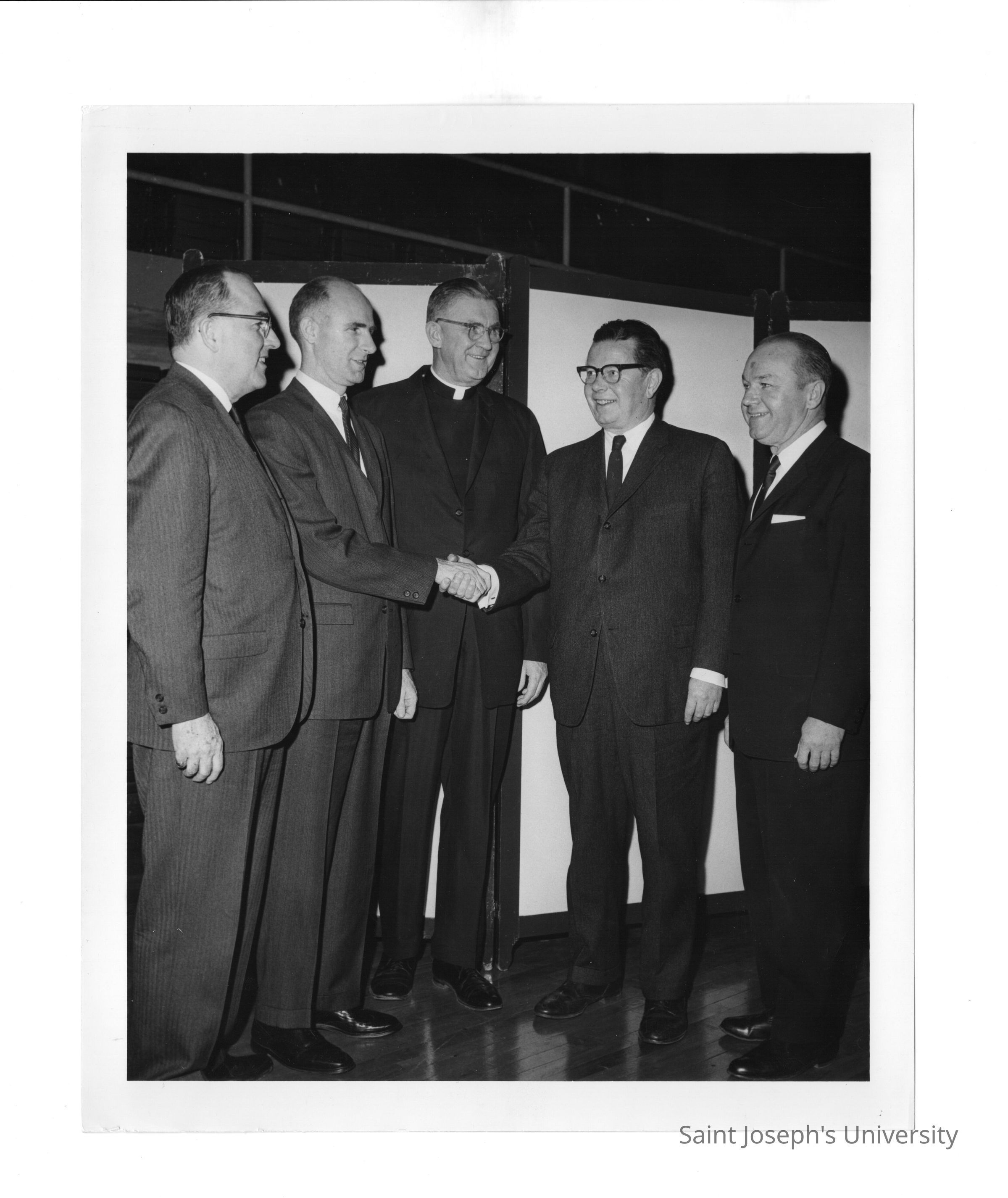 William F. Maloney, S.J., New Jersey Governor Richard J. Hughes (class of 1930) and others during alumni communion supper, February 12, 1964.