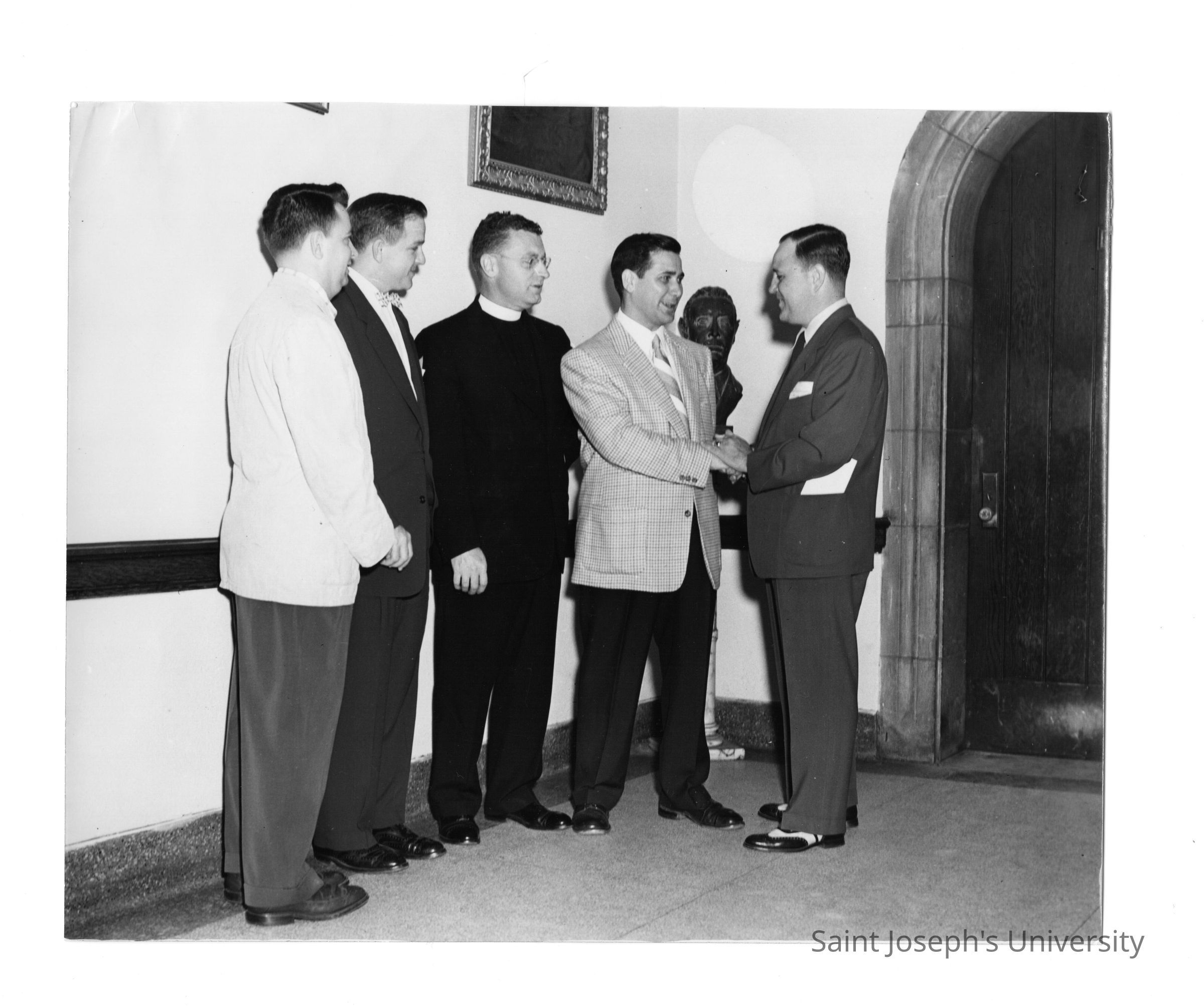 Alumni homecoming event, June 4, 1953, with Edward G. Jacklin, S.J., William Ariano and others.