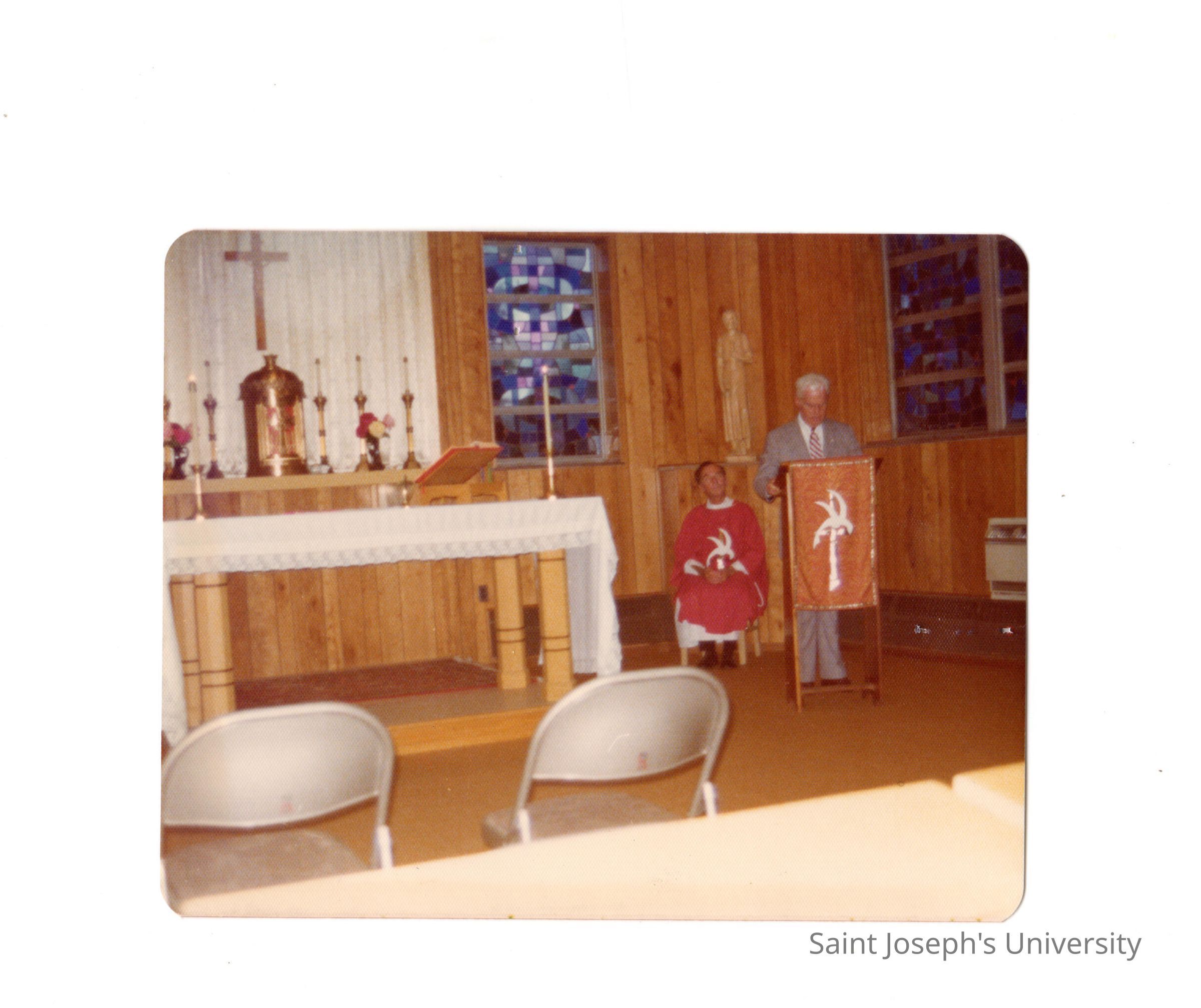Alumni reunion of class of 1931 held on May 18, 1976. View of mass with Terrence Toland, S.J