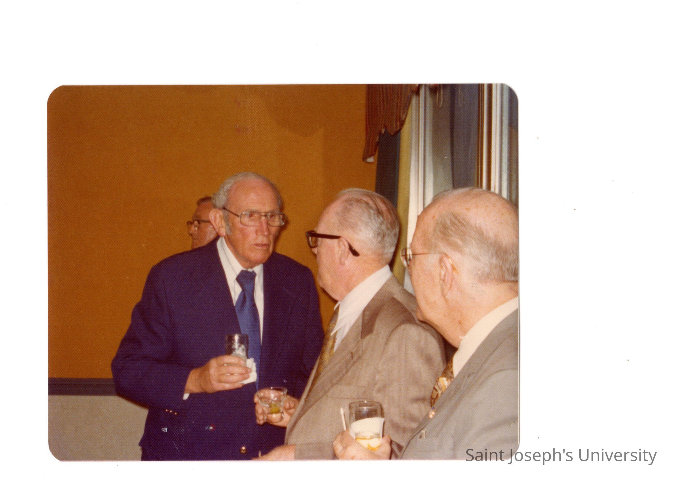Alumni reunion of class of 1931 held on May 18, 1976. View of alumni arriving in cars and at gathering with Terrence Toland, S.J