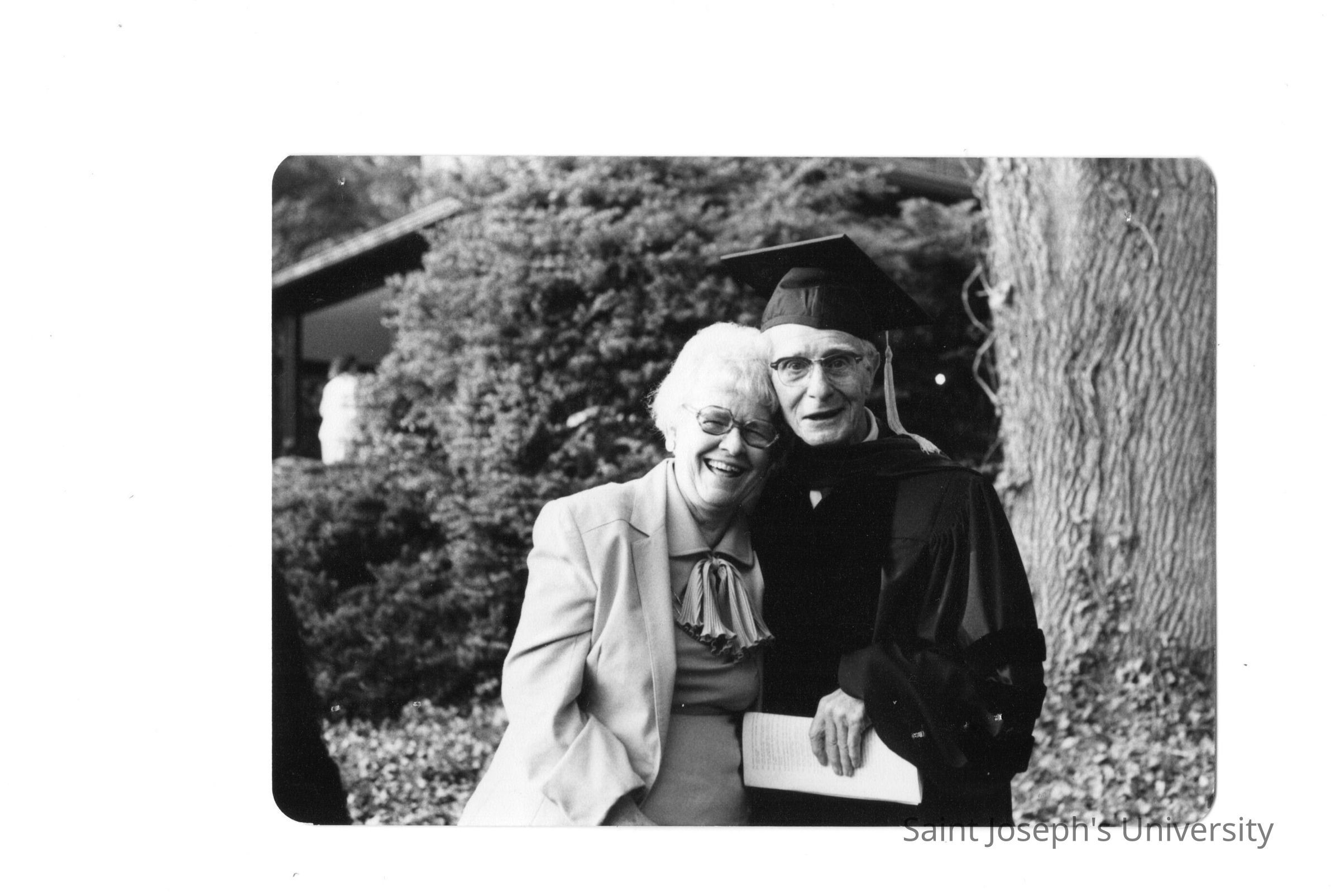 Alumni reunion of class of 1931 held on May 16, 1981. Three prints of alumni in cap and gown along with two spouses. Includes Paul Hochhaus, Joe Forlescue, Dr. and Mrs. Ben Lanshan, Dr. and Mrs. Henry Hession.